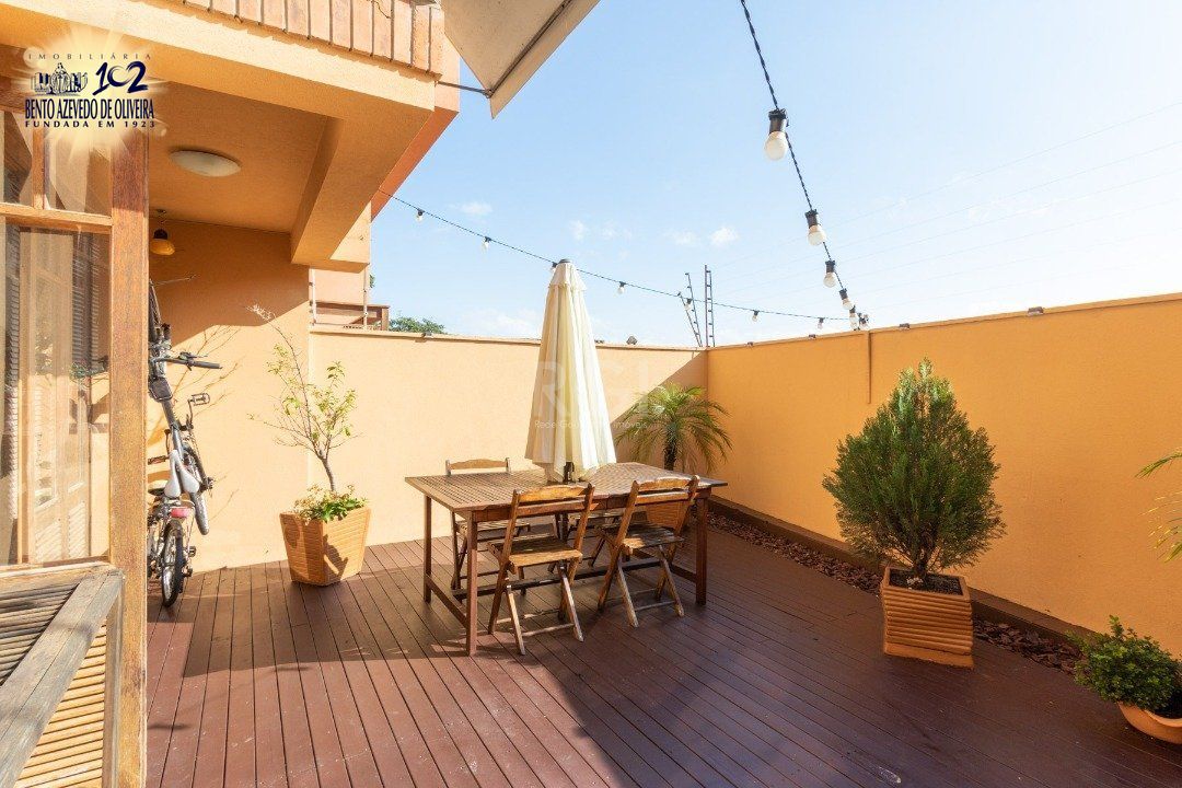 No térreo, possui hall de entrada, lavabo, churrasqueira, área de serviço, pátio e uma vaga de garagem coberta.