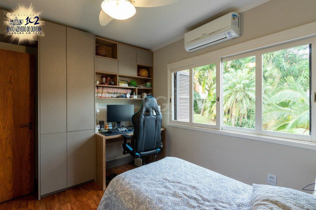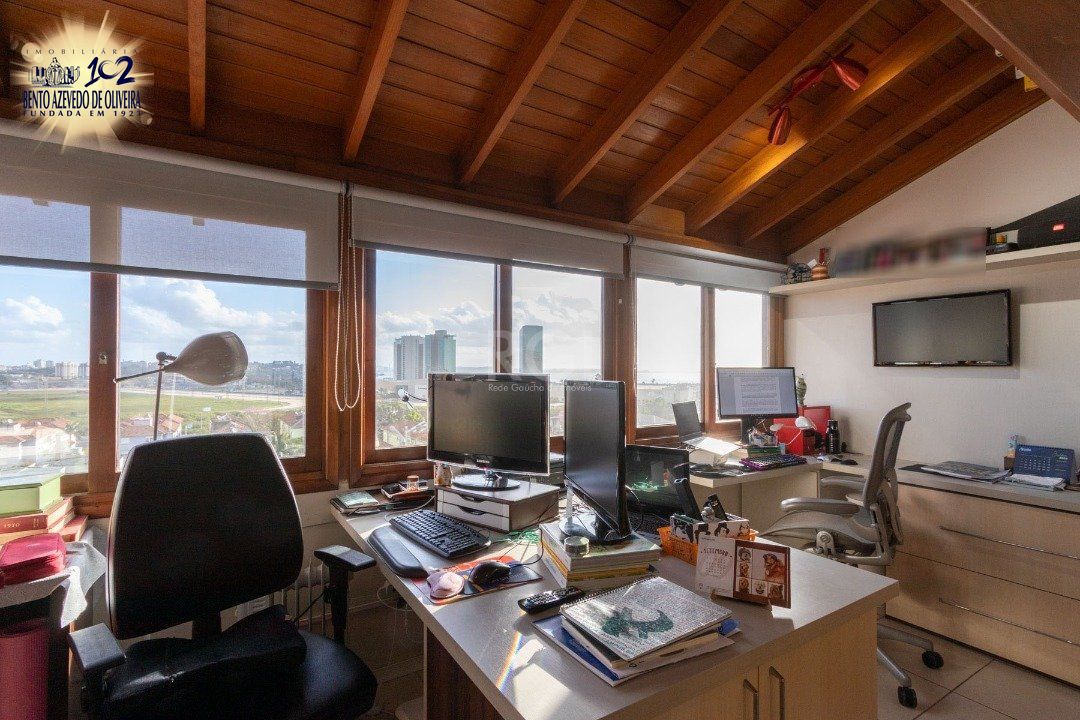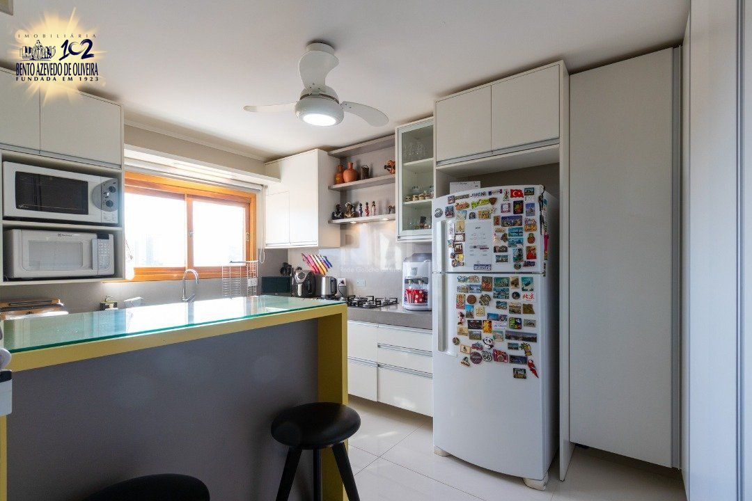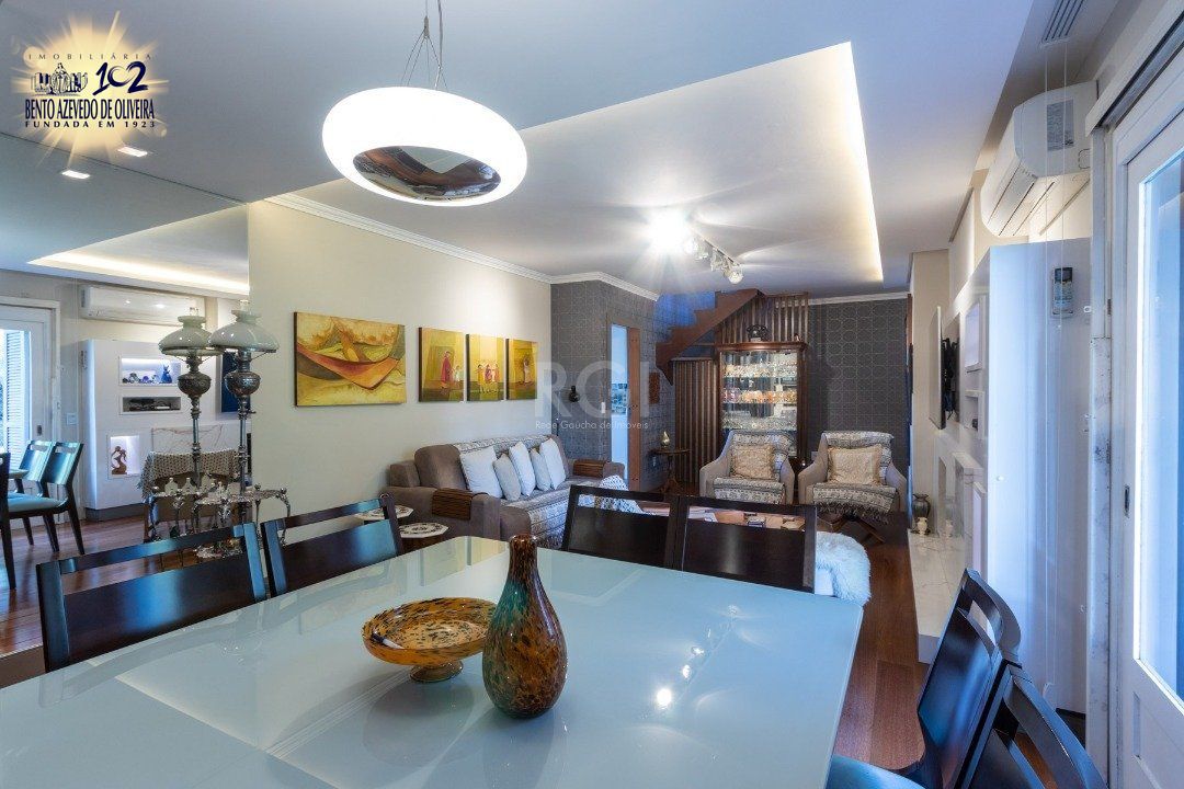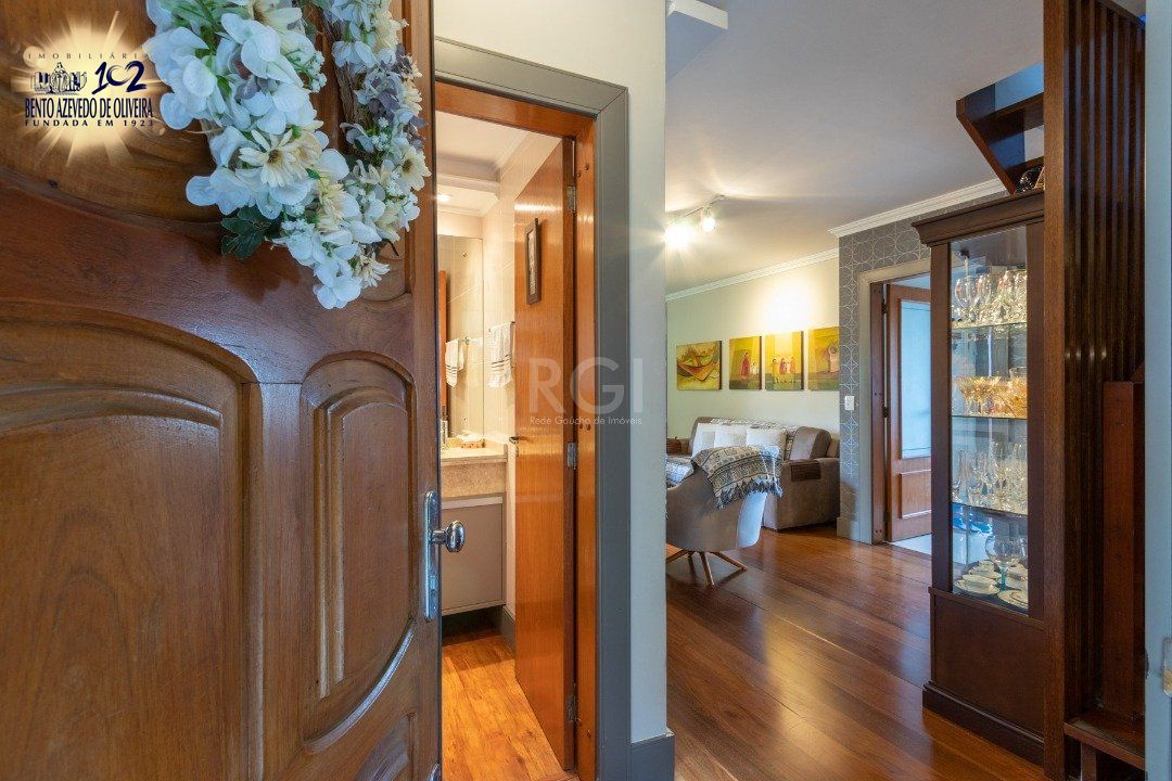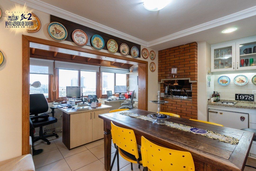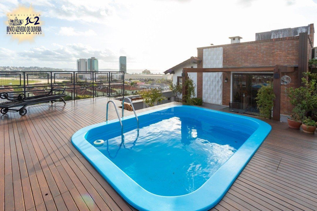 Excelente cobertura de 234 m² de área privativa, semi mobiliado com muitos armários planejados de ótima qualidade, com 3 dormitórios, sendo uma suíte com closet, dependência de empregada independente e com banheiro privativo, cozinha ampla, área de serviço separada, água quente com alta pressão e pressurizador. Totalmente reformado entre 2020 e 2021. Living amplo com sacada e lavabo, escritório. no 2º andar banheiro, cozinha com churrasqueira, living com lareira, terraço amplo e com piscina aquecida com 2 motores novos. Linda vista definida do Rio Guaíba. Possui 02 vagas de garagem escriturada. Interfone. Aceita FGTS e financiamento.