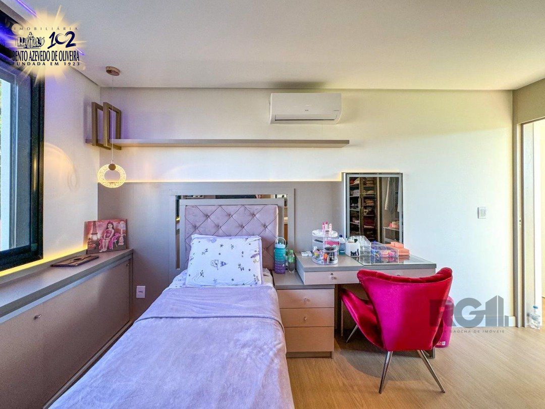 Desfrute de uma vida elegante no condomínio Alphaville Veneto, localizado na Zona Sul de Porto Alegre, com uma infraestrutura completa que inclui segurança 24 horas, quadra de tênis, beach tênis, playground, trilhas, salão de festas, espaço kids, sala fitness e piscina coletiva infantil e adulta (coberta no inverno).