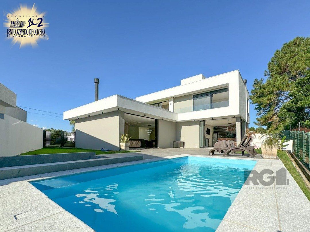 A piscina privativa com aquecimento solar garante conforto adicional, enquanto o espaço gourmet com churrasqueira é perfeito para receber amigos e familiares. O living conta com lareira, disponível em duas opções: lenha e álcool, para os dias frios. A cozinha americana com ilha é um espaço moderno e funcional.