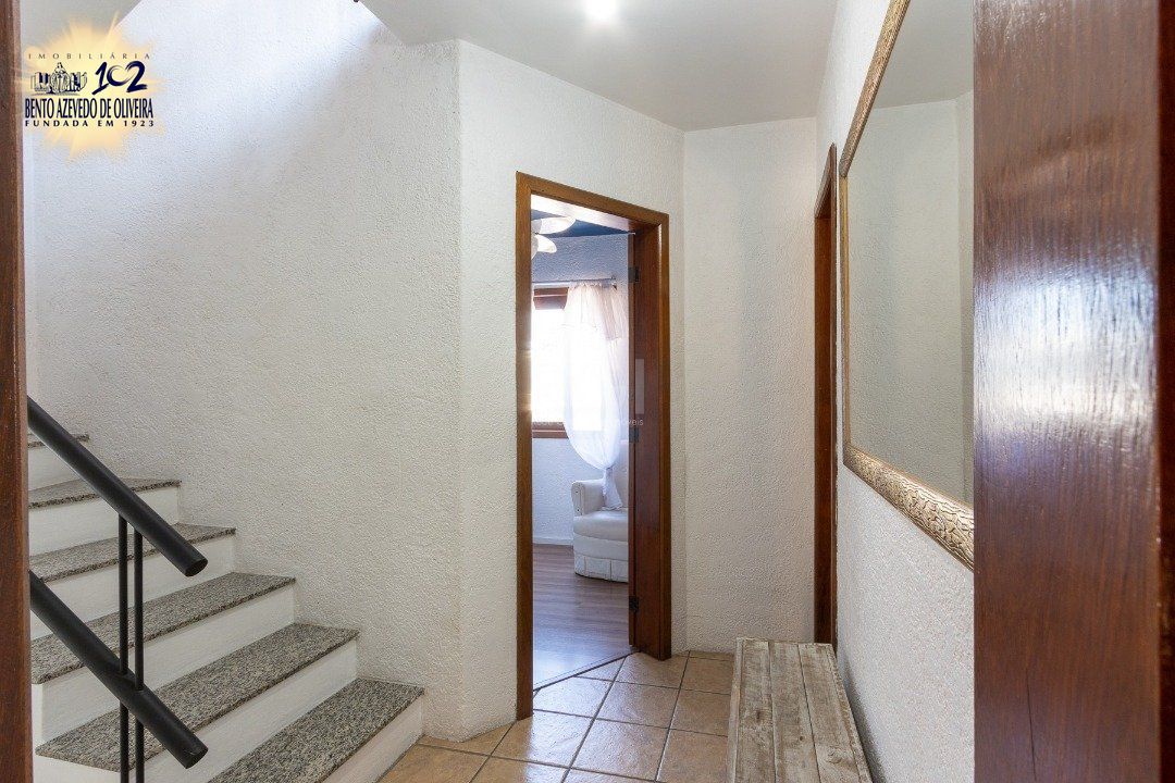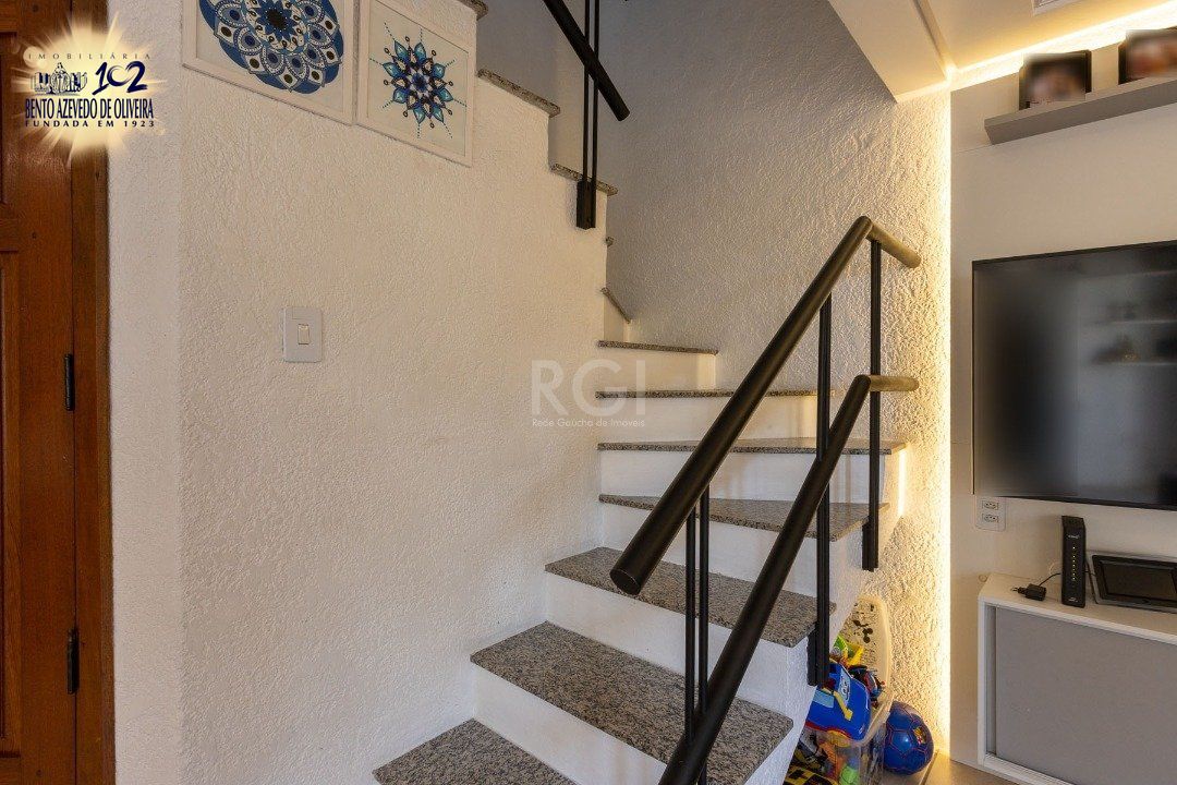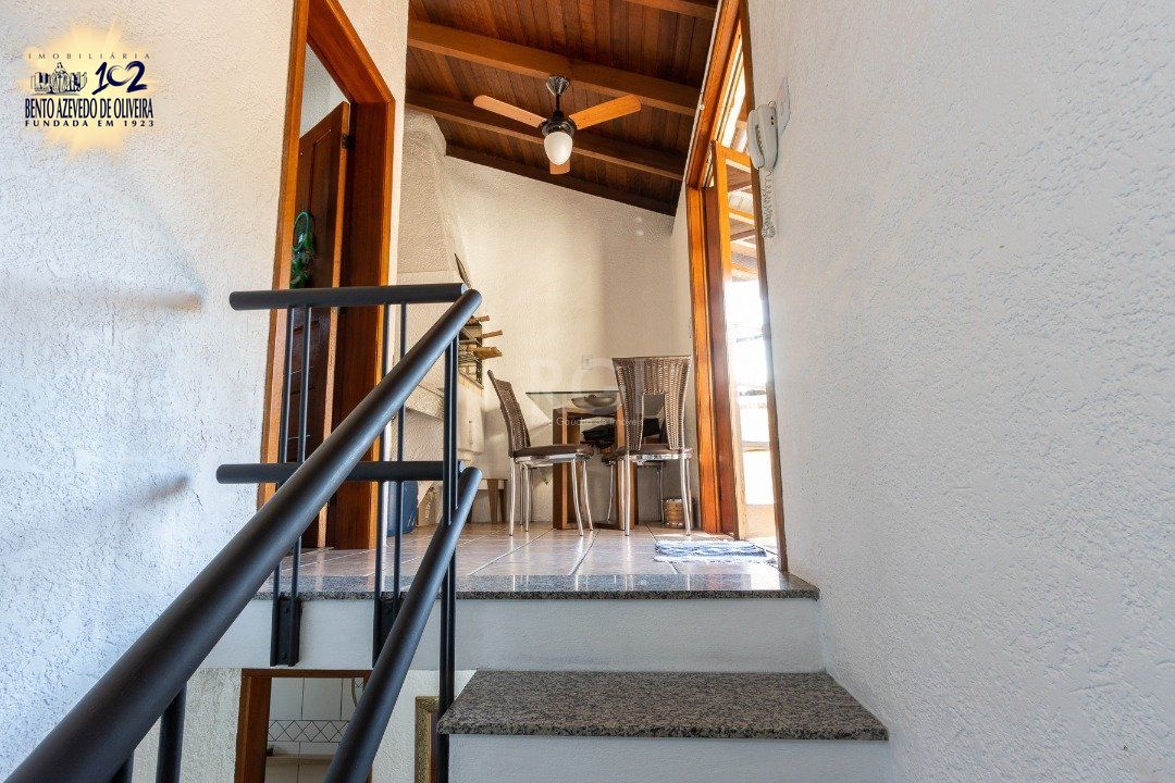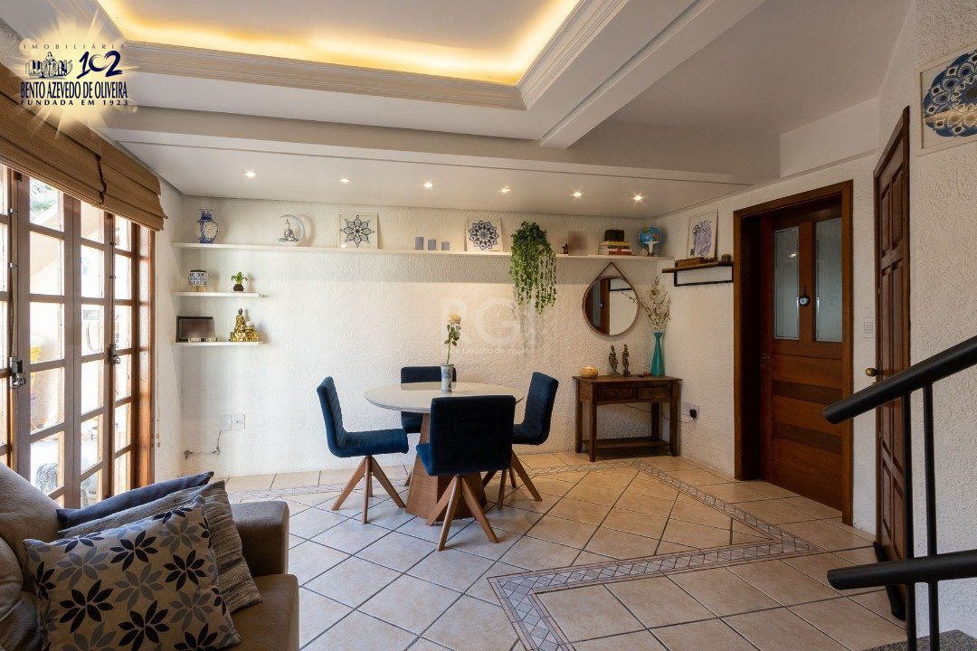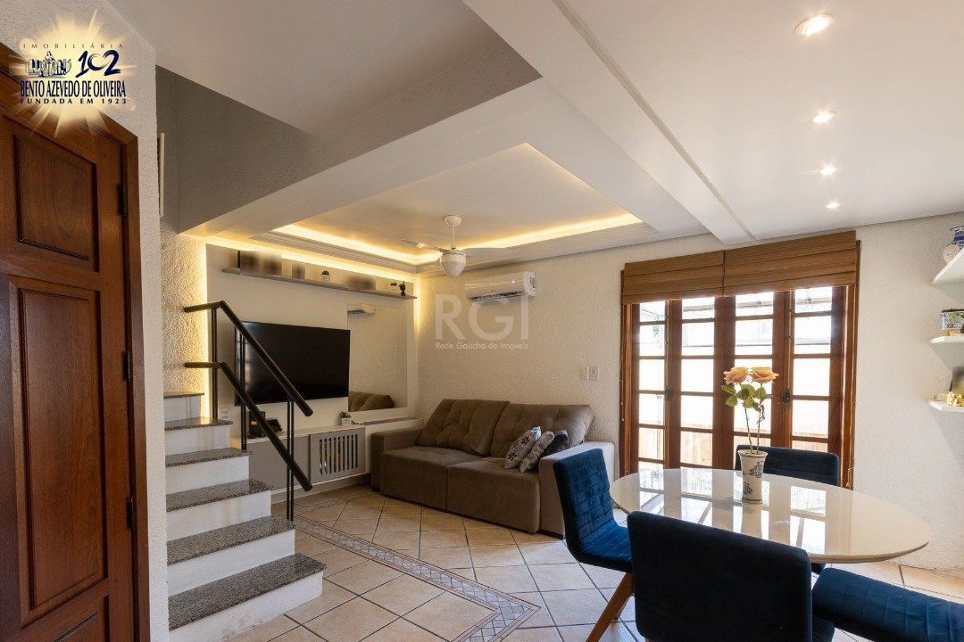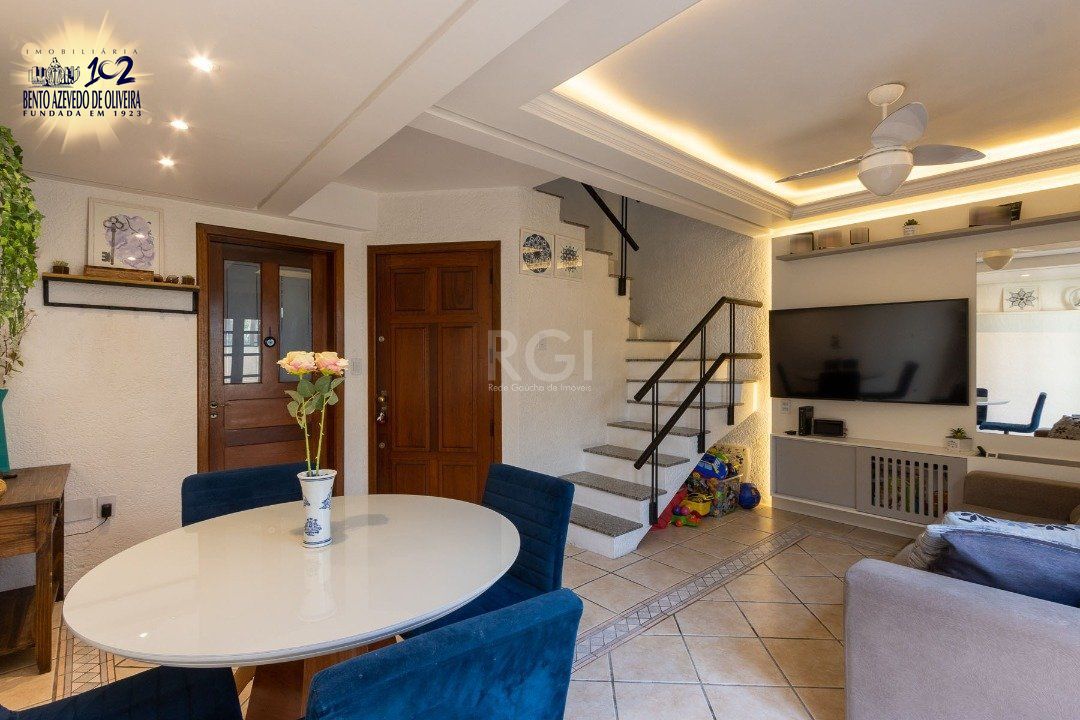 Impecável sobrado em condomínio fechado! A casa conta com 3 dormitórios, sendo 2 suítes, living dois ambientes e cozinha com móveis planejados, lindo terraço com churrasqueira e vista maravilhosa do rio. Sacada na suíte. Garagem para dois carros. Condomínio com infra completa.