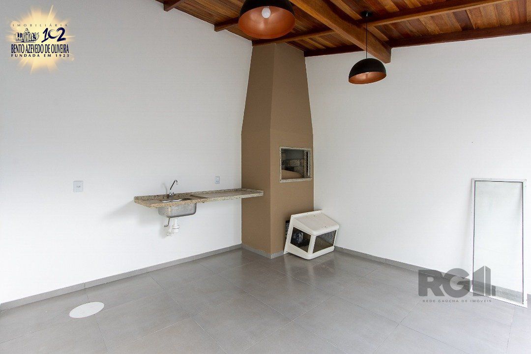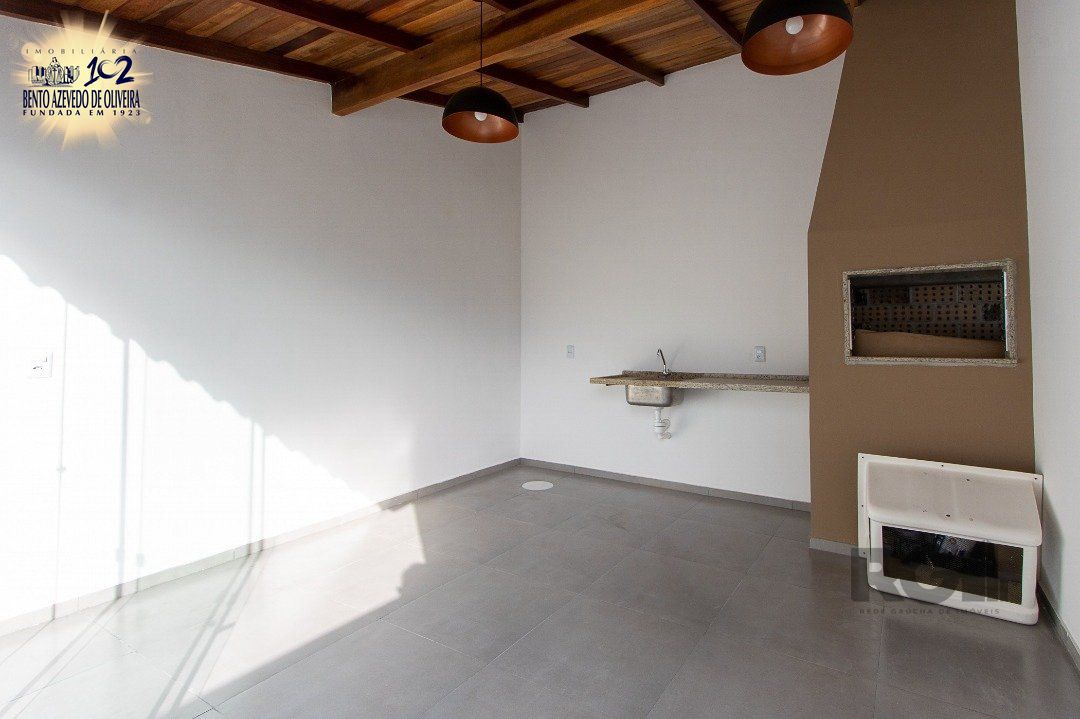 Possui dois dormitórios com sacada, duas suítes, living com lareira, lavabo, cozinha planejada, quiosque com churrasqueira, uma vaga de garagem.