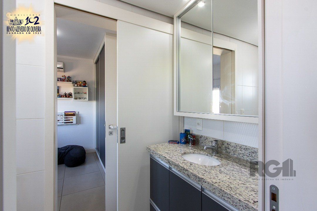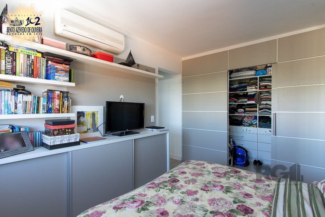 Apartamento semi-mobiliado de 3 dormitórios, com uma suíte principal que inclui um closet e duas suítes americanas, lavabo, sala de estar com 2 ambientes bem definidos e uma cozinha americana com churrasqueira Área de serviço é espaçosa com armário e Splits já instalados . Vista para o Guaíba.. Possui 3 vagas de estacionamento escrituradas e lado a lado, e um depósito.