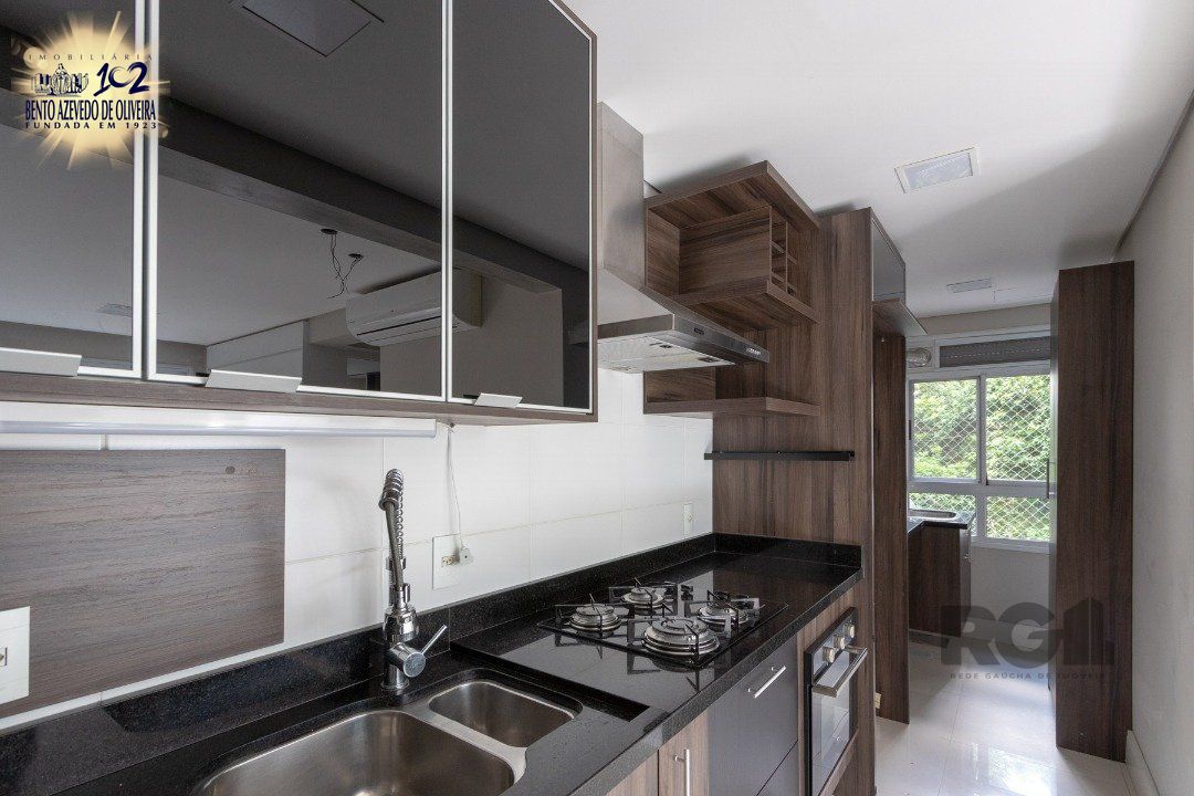 Apartamento de dois dormitórios, com suíte, living estendido, churrasqueira, cozinha planejada e equipada, aparelho de ar condicionado split inverter 22000 btus instalado no living, banheiros social e suíte com móveis planejados, e dormitórios com armários planejados. Imóvel possui uma vaga de garagem coberta e escriturada.