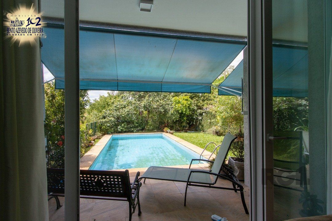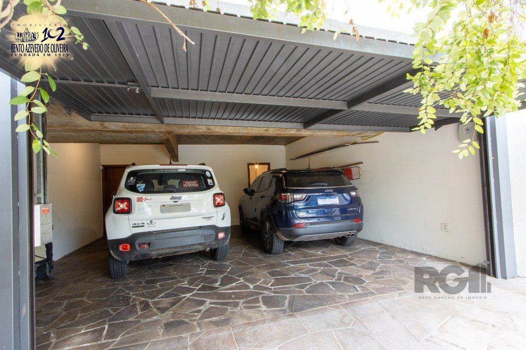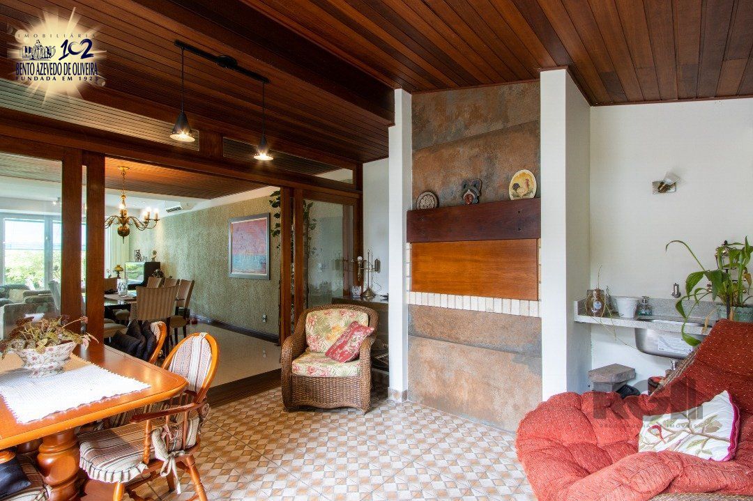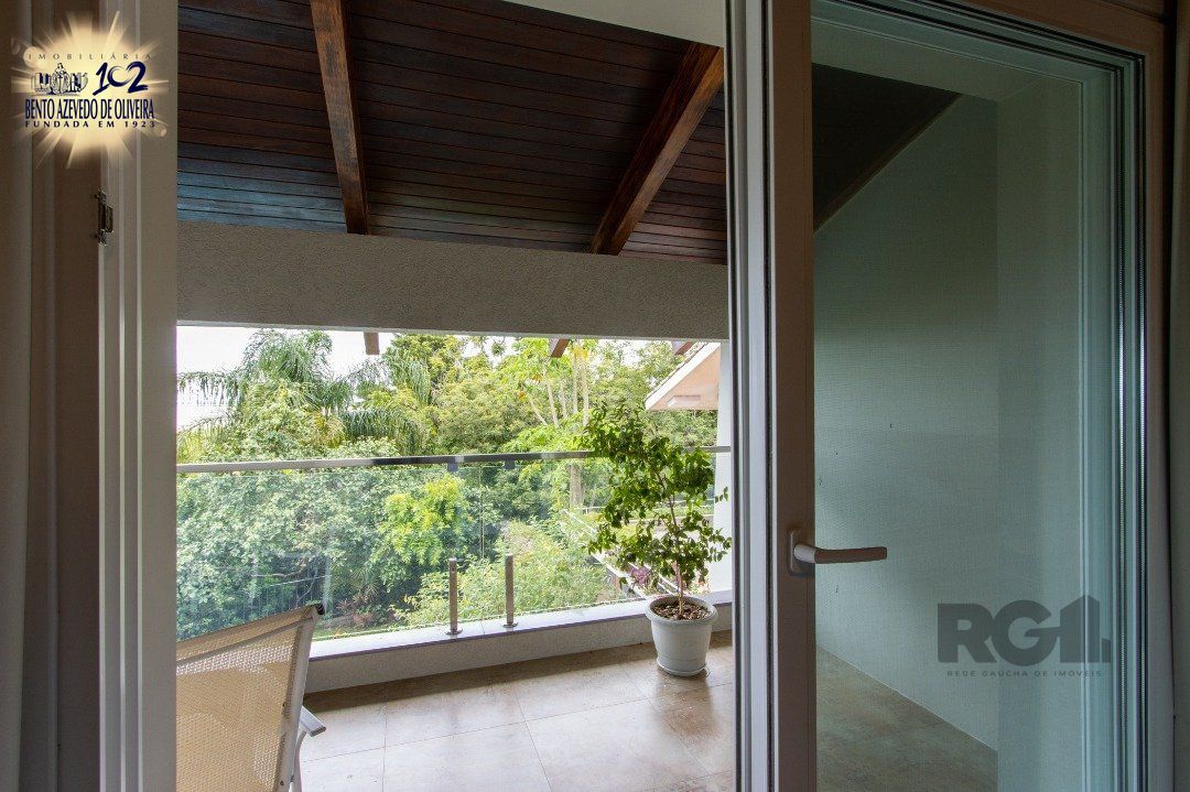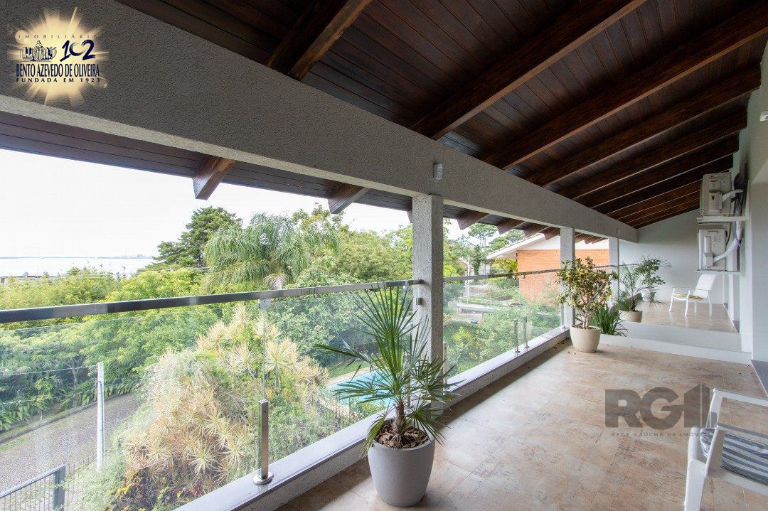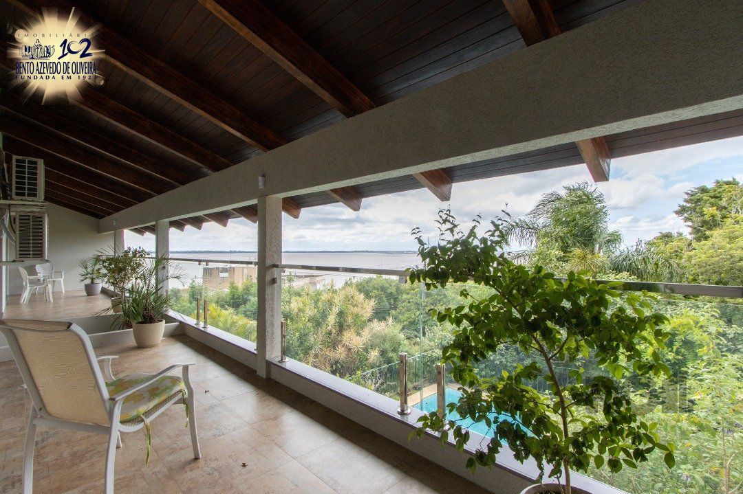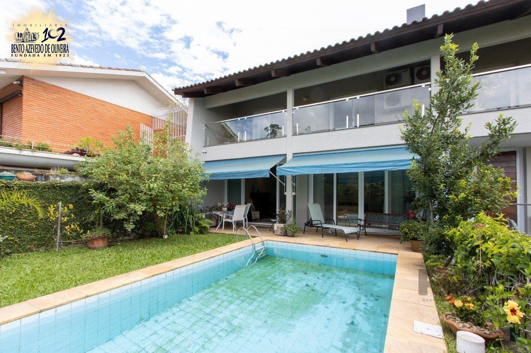 Impecável sobrado com bela vista para o Rio, 3 dormitórios, 2 suítes, sendo uma com closet e banheira de hidromassagem, living 3 ambientes com lareira, gabinete, lavabo, sala de jantar, cozinha com móveis sob medida, espaço gourmet com churrasqueira e fogão à lenha, lavanderia, dependência de empregada completa, garagem coberta para 4 carros e pátio com piscina. Com 460 m² de área construída, em terreno com 569 m².