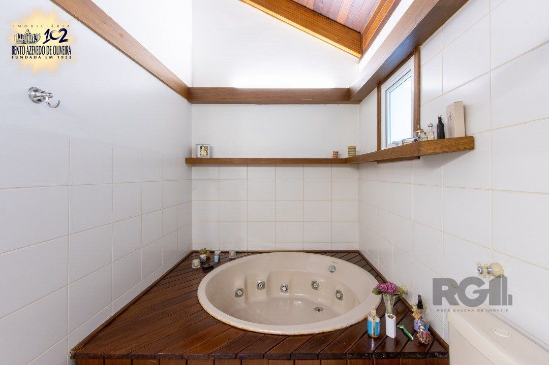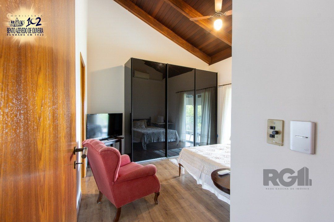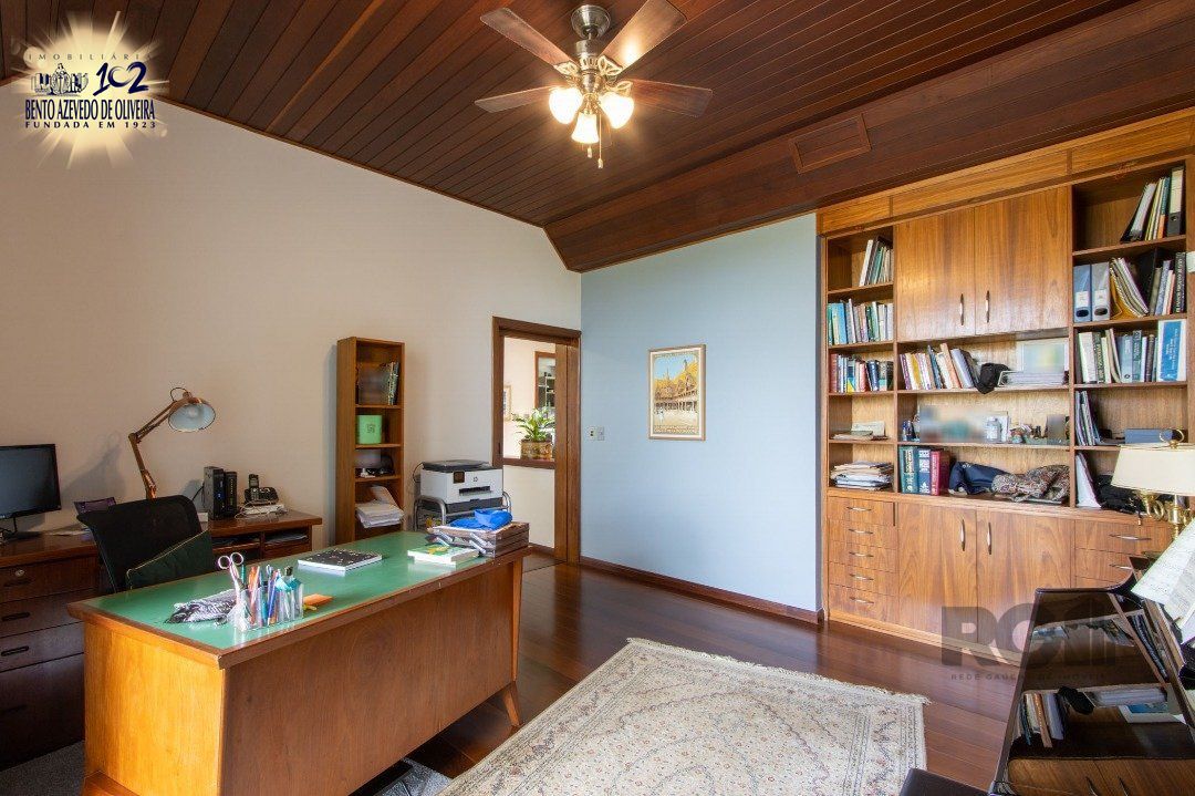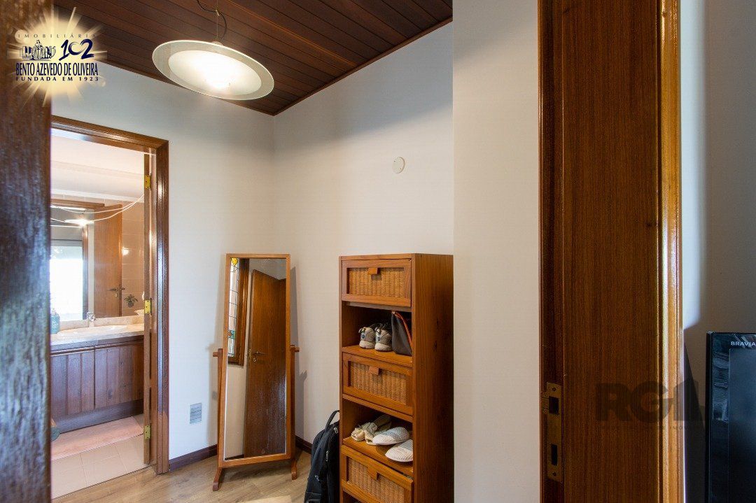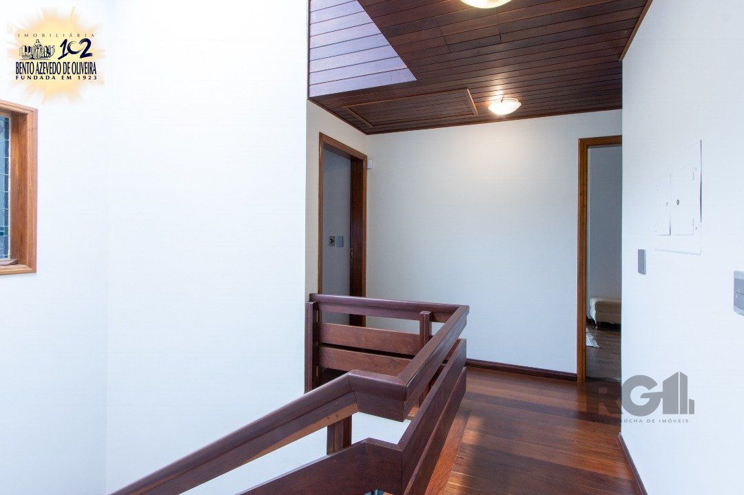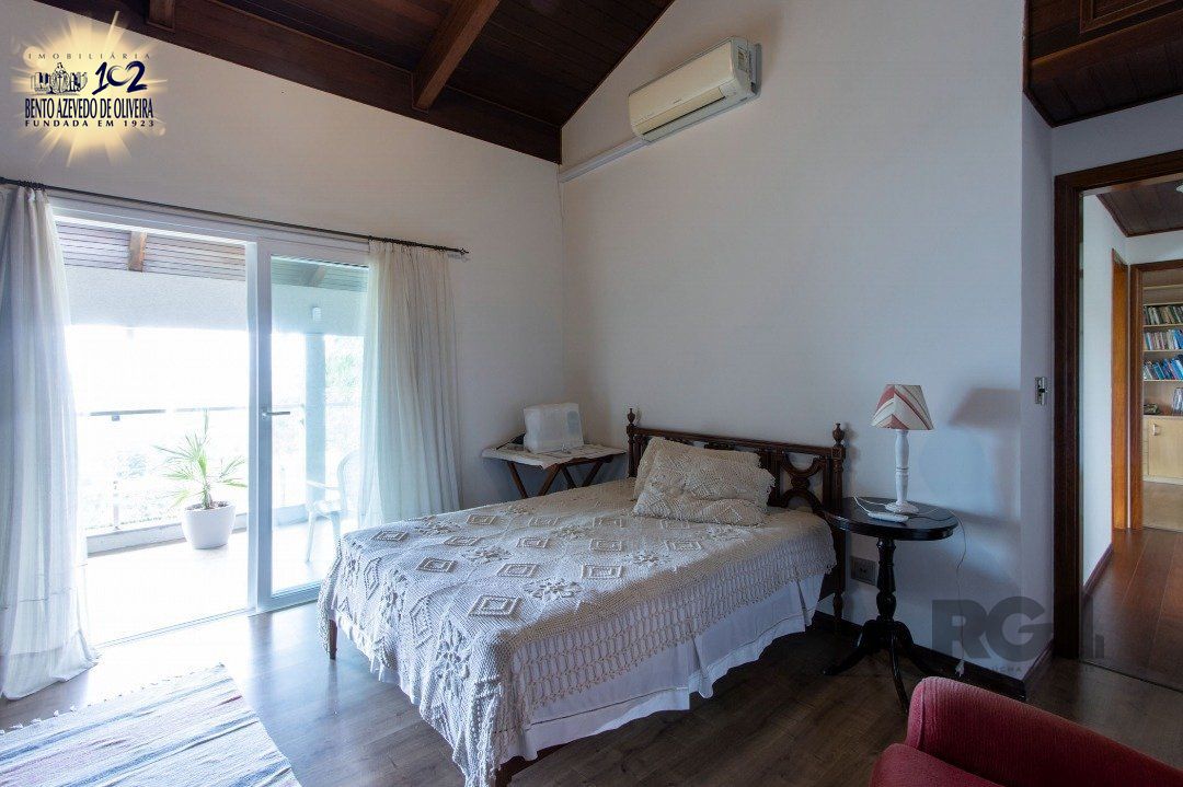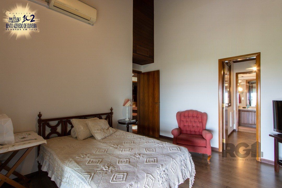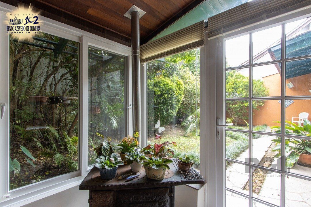 Impecável sobrado com bela vista para o Rio, 3 dormitórios, 2 suítes, sendo uma com closet e banheira de hidromassagem, living 3 ambientes com lareira, gabinete, lavabo, sala de jantar, cozinha com móveis sob medida, espaço gourmet com churrasqueira e fogão à lenha, lavanderia, dependência de empregada completa, garagem coberta para 4 carros e pátio com piscina. Com 460 m² de área construída, em terreno com 569 m².