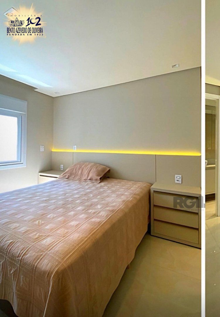 Possui três dormitórios, sendo um dormitório com uma suíte e os outros dois, com uma suíte americana, living para dois ambientes, cozinha americana, área de serviço, lavabo e uma vaga de garagem.