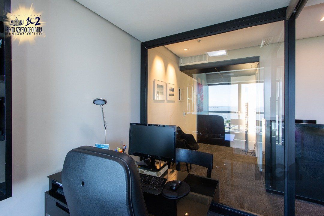 Vista deslumbrante para o Guaíba e o Gasômetro, proporcionando um ambiente de trabalho inspirador.