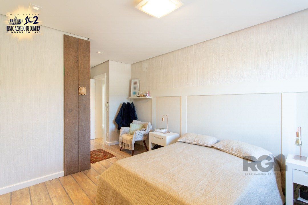 Destaques do imóvel: 4 dormitórios, sendo 2 suítes, incluindo 1 suíte térrea; 3 lareiras, proporcionando charme e conforto térmico. Piso aquecido, placas solares, garantindo eficiência energética e economia, cozinha não integrada, ideal para quem busca praticidade e organização, living amplo com belíssimo madeiramento e vista para o jardim. Espaço gourmet com churrasqueira. Área externa deslumbrante com pergolado, piscina e deck, jardins consolidados e privacidade total. Garagem 6 vagas, 2 cobertas e pátio espaçoso com árvores frutíferas.
