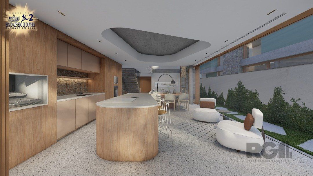 Living amplo com 70m² com cozinha americana e área gourmet, pátio. 04 dormitórios suítes, sendo a suíte master com 34,20m² uma área externa com varanda.