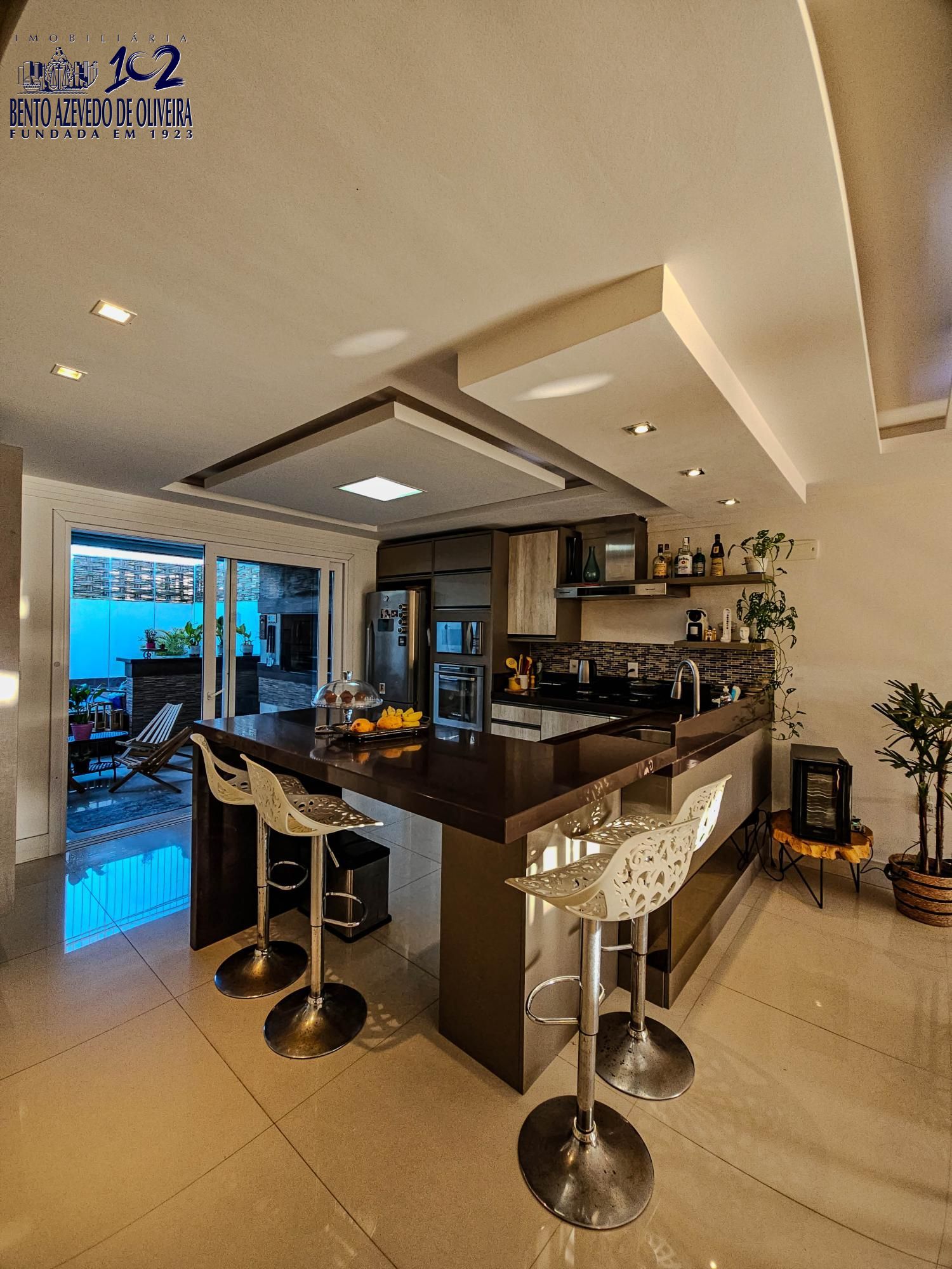 Aos fundos, churrasqueira em varanda gourmet fechada com vidros retráteis que a separam do ambiente do deck com piscina, tudo planejado e de muito bom gosto. Conta ainda com lavanderia, depósito amplo e garagem fechada para 2 veículos.