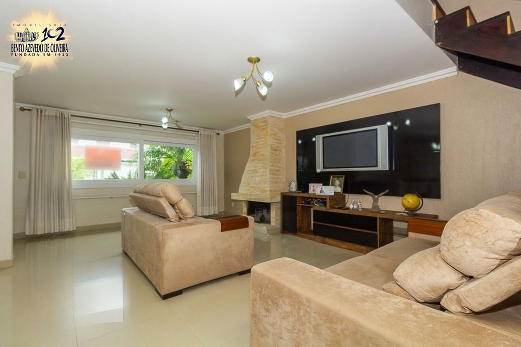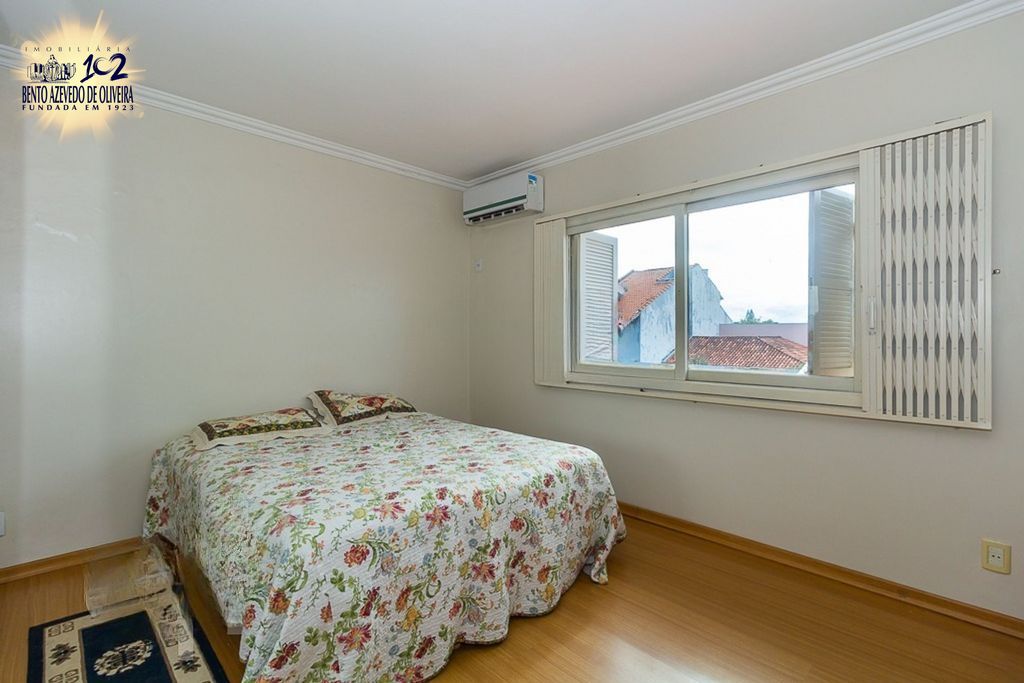 Linda casa de dois pavimentos no bairro Ipanema, com 4 dormitórios, sendo 1 suítes, uma delas localizada no térreo. Conta ainda com banheiro social, lavabo, estar íntimo, amplo living com lareira para estar e jantar, escada em madeira de lei, cozinha e copa.
