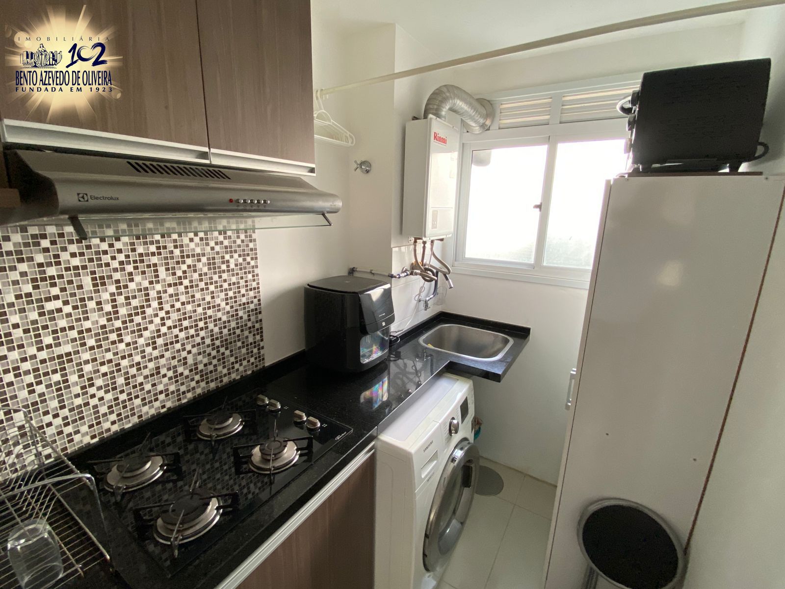 Área de serviço com tanque e aquecedor;