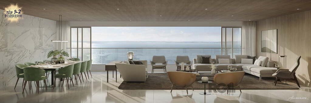 Com 299 m² privativos, o apartamento conta com 4 suítes (sendo 1 master com closets e banheiros individuais – ele e ela), hall social privativo, living para 3 ambientes, varanda integrada à sala de estar, espaço gourmet com churrasqueira, cozinha, área de serviço com lavanderia e acesso independente, quarto de serviço e 3 vagas de garagem.