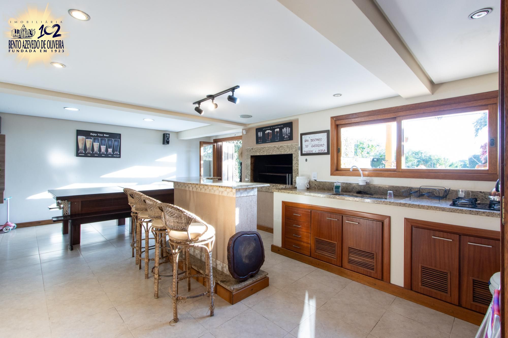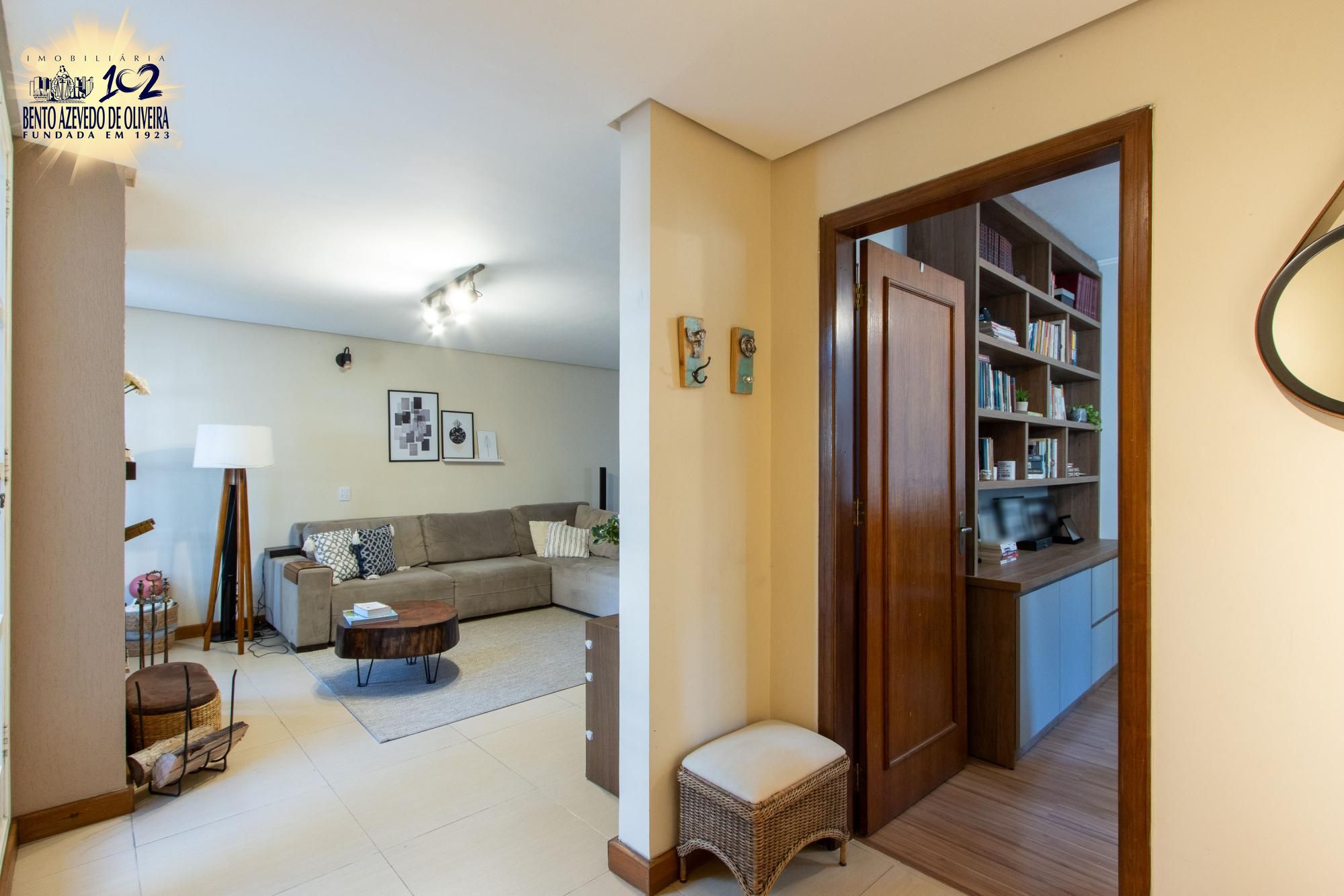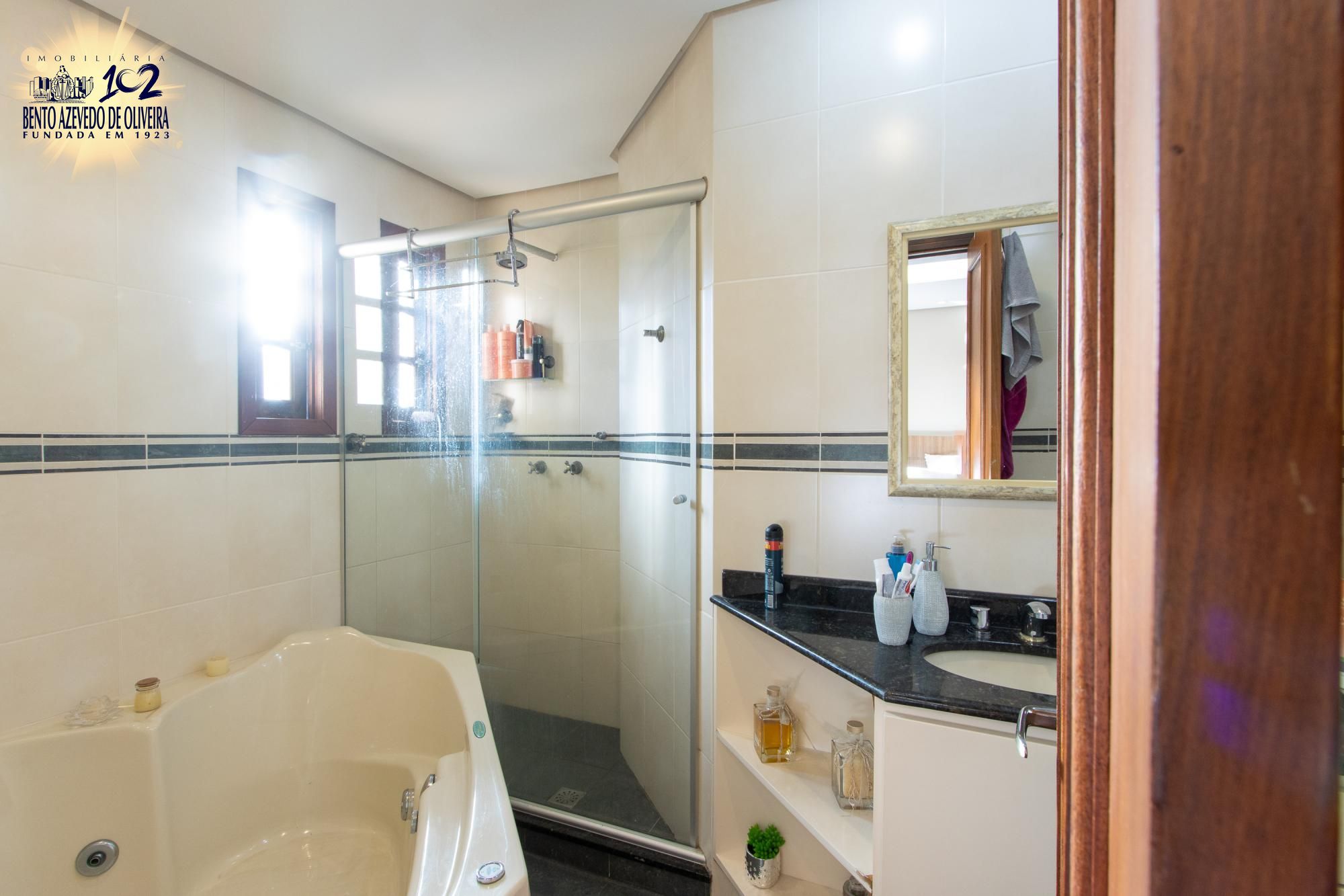 Living para tres ambientes com lareira, 03 amplas suítes, sendo 01 com banheira de hidromassagem, lavabo, gabinete, copa-cozinha, jardim de inverno, espaço gourmet com churrasqueira, banheiro social, adega, área de serviço e pátio com piscina.
