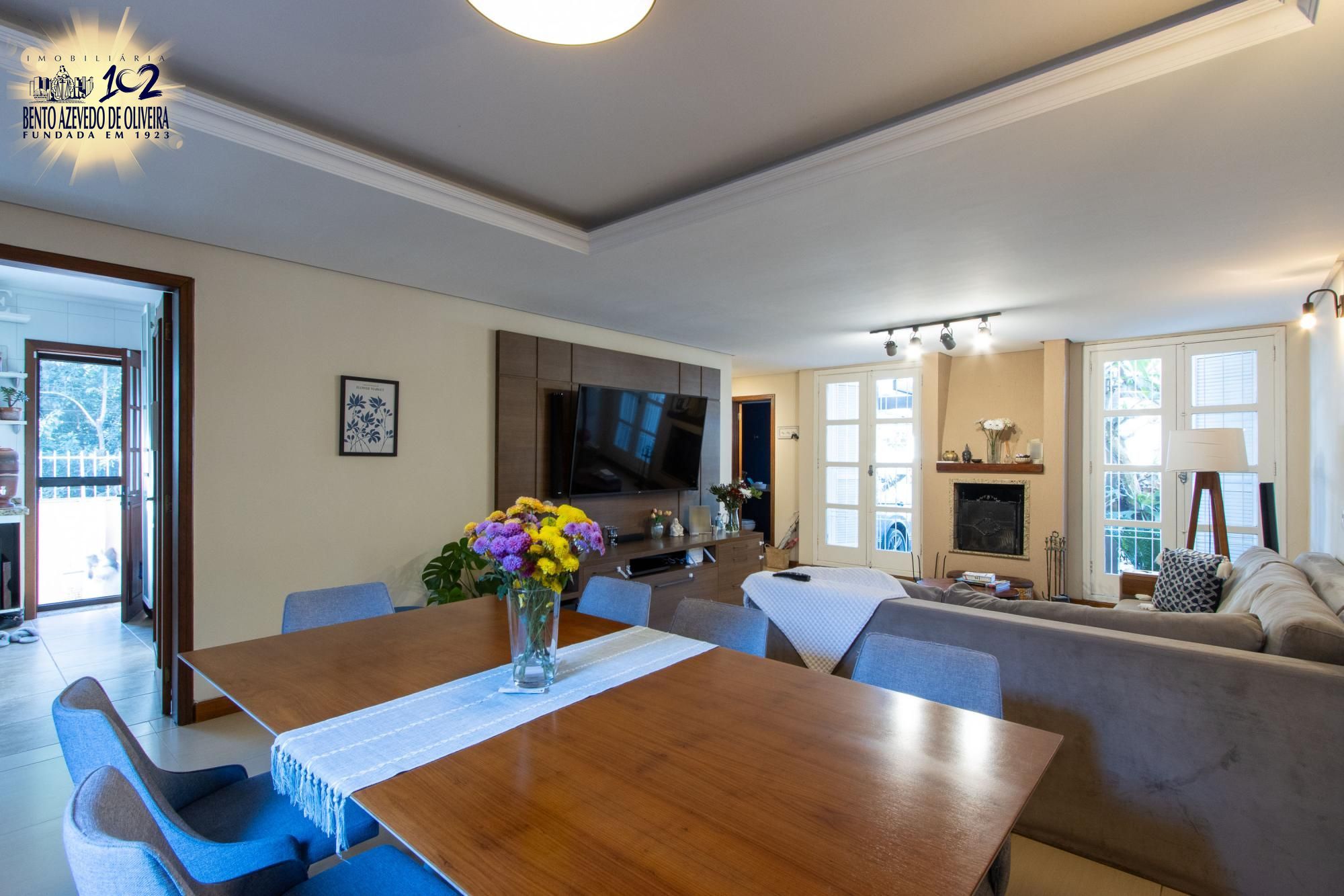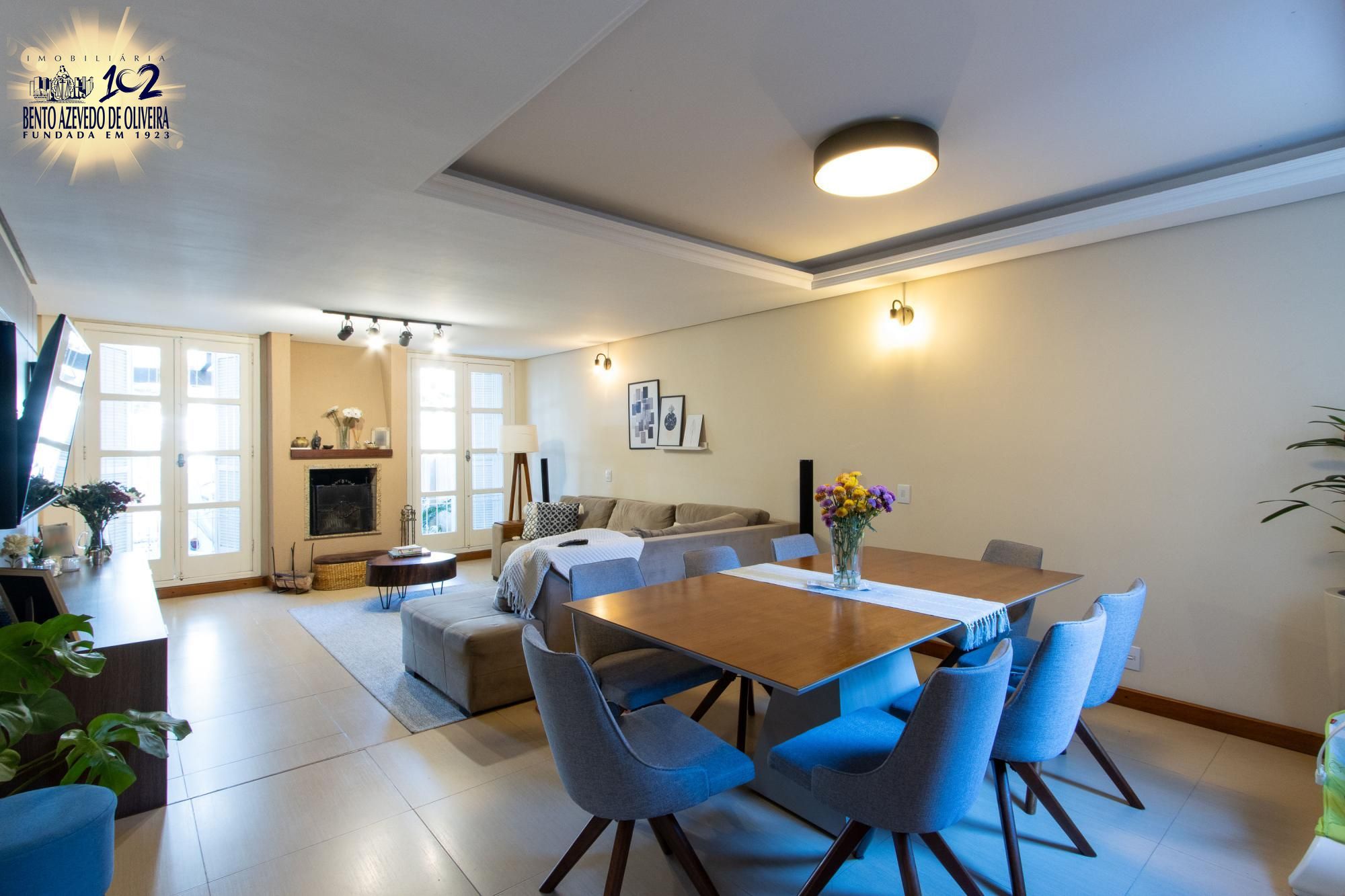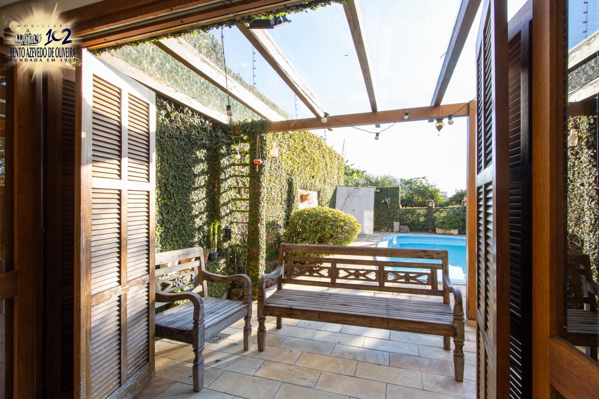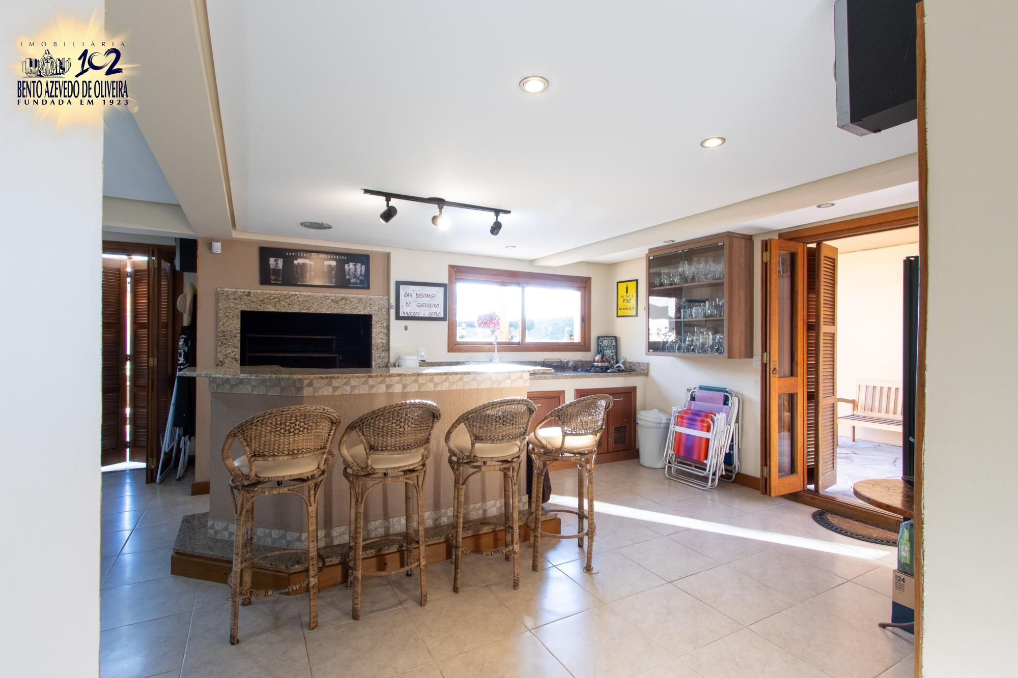 Living para tres ambientes com lareira, 03 amplas suítes, sendo 01 com banheira de hidromassagem, lavabo, gabinete, copa-cozinha, jardim de inverno, espaço gourmet com churrasqueira, banheiro social, adega, área de serviço e pátio com piscina.