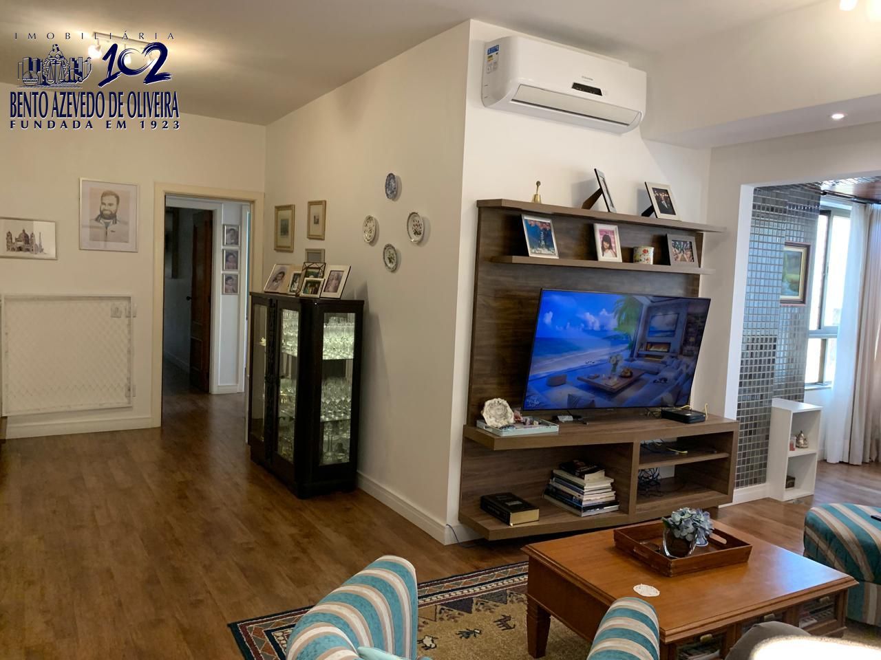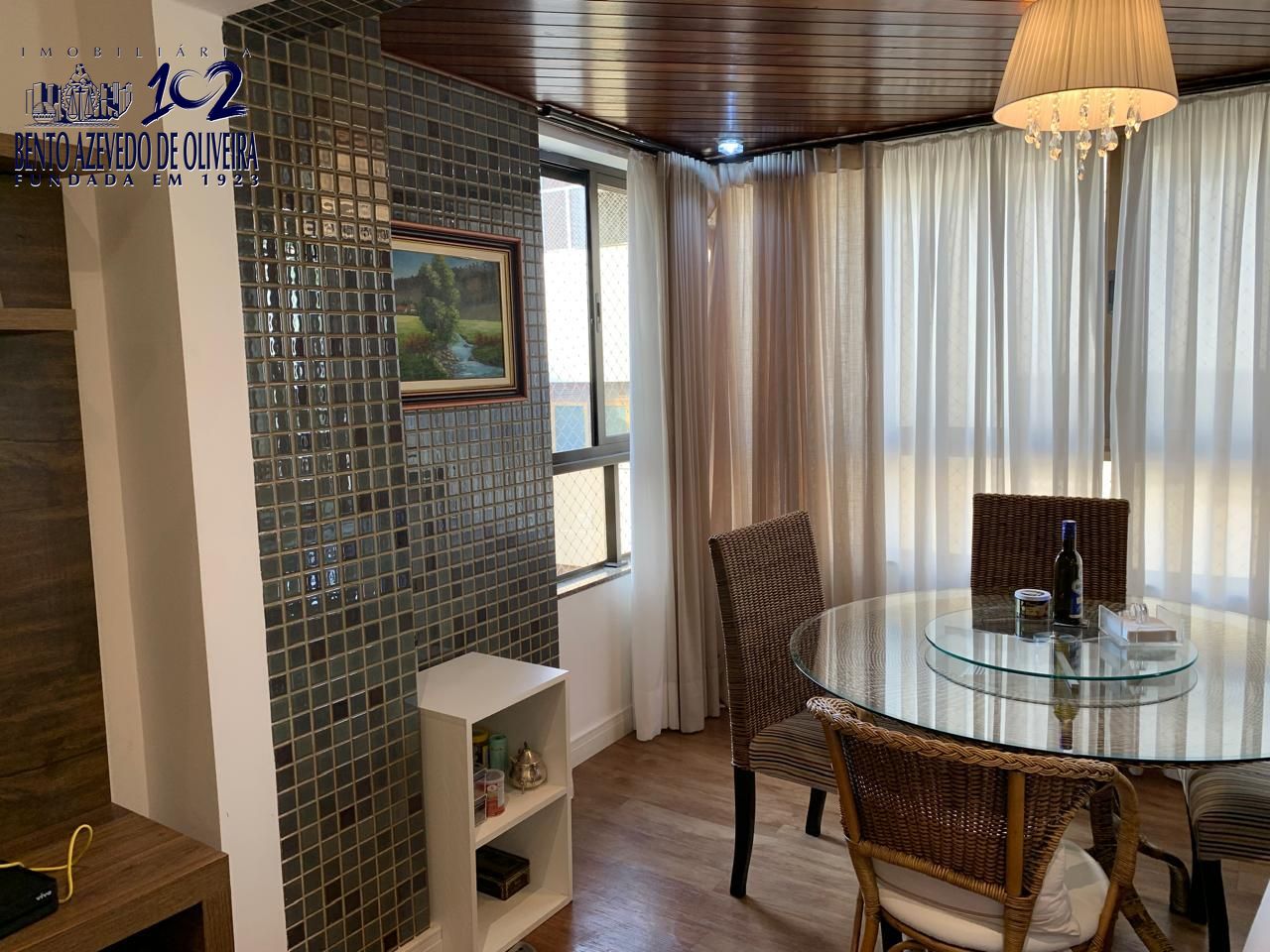 Amplo living para 03 ambientes, sacada totalmente envidraçada proporcionando um belo recanto com lareira. Todas aberturas em madeira de lei pintadas de branco fosco. cozinha planejada em perfeito estado de conservação, área de serviço completa e dependência empregada com banheiro.