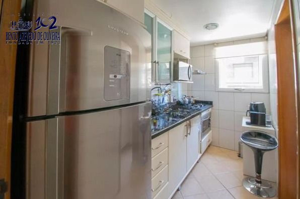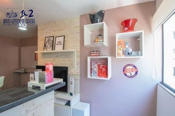 Possui banheiro social, cozinha planejada, área de serviço e vaga escriturada descoberta. Os pisos em laminado e cerâmica nas áreas molhadas estão em ótimo estado, e a unidade se destaca pela ótima iluminação natural e ventilação cruzada, possui apenas dois lances de escada.