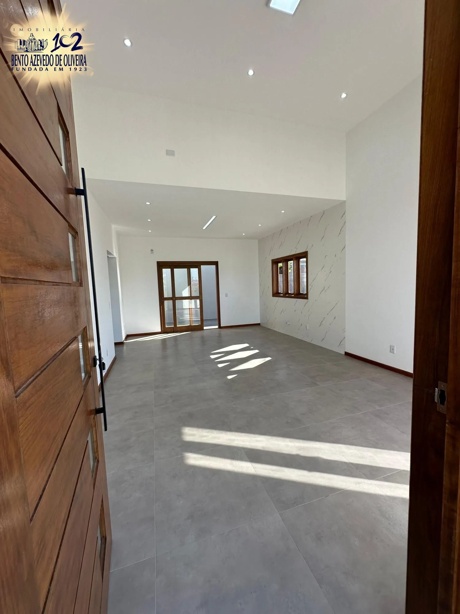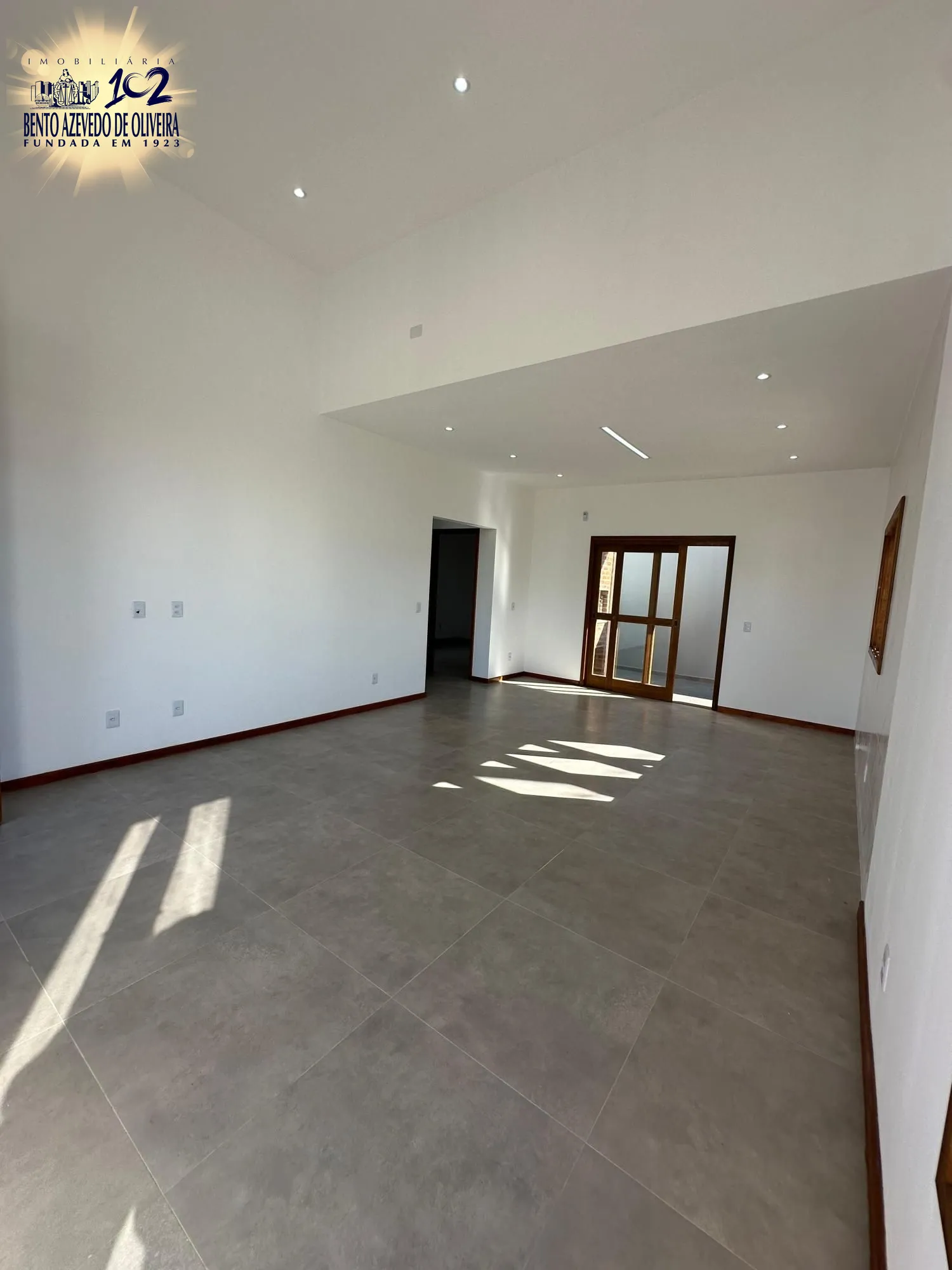 Sala ampla com pé-direito alto, proporcionando mais iluminação e ventilação natural