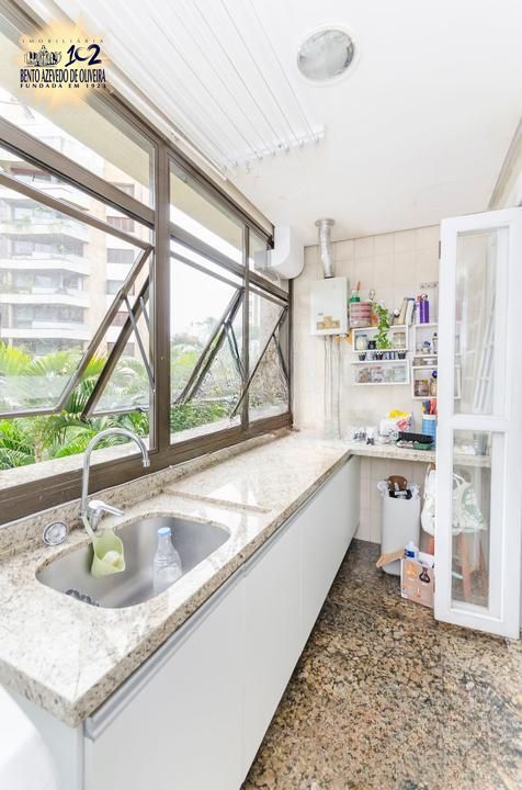 A cozinha é espaçosa e funcional, equipada com churrasqueira, além de dependência de empregada completa, garantindo praticidade no dia a dia.