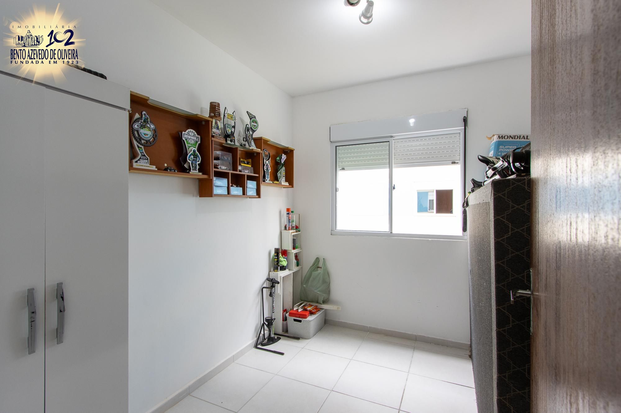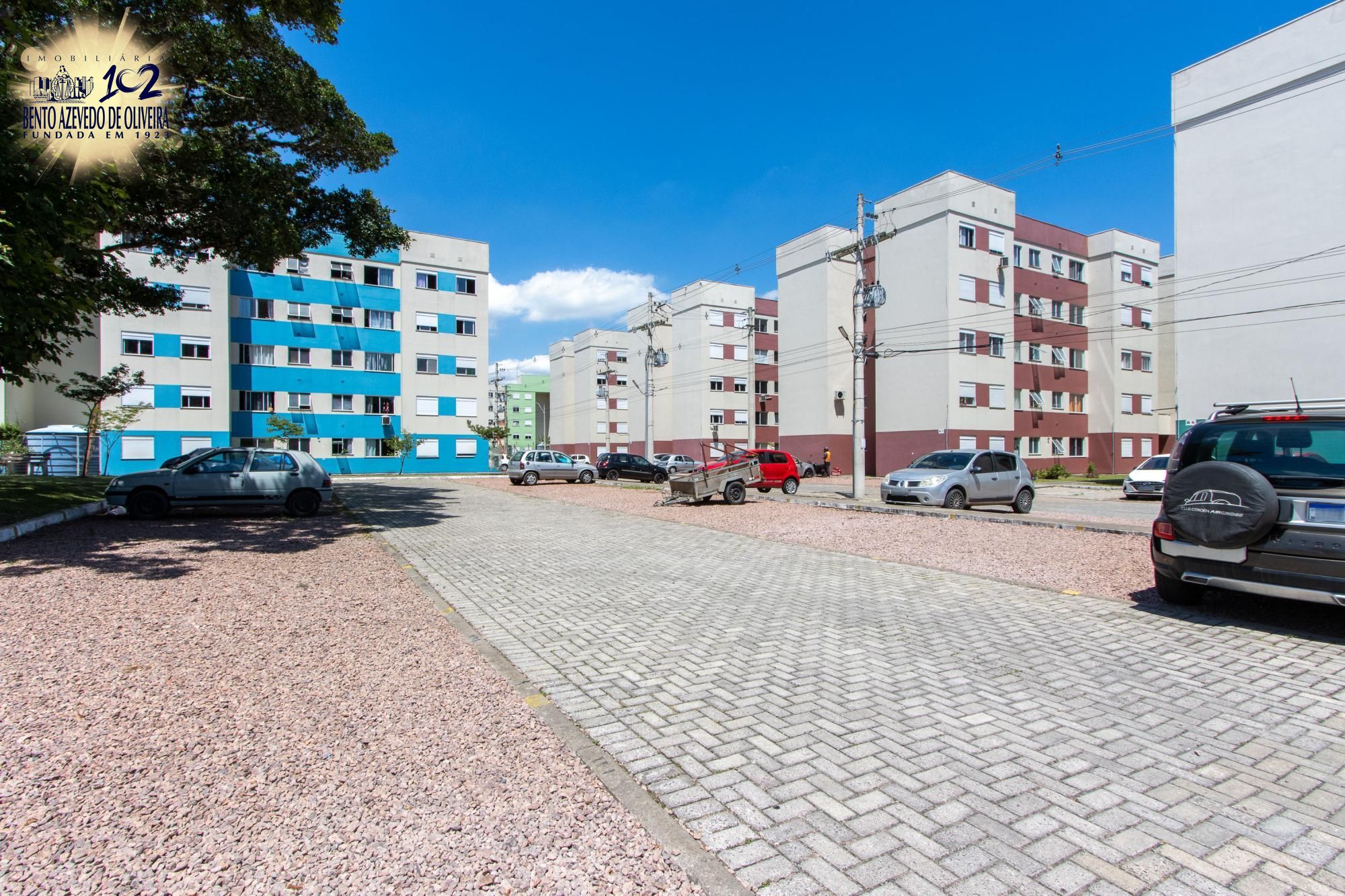 O imóvel possui 51 m², 2 dormitórios, 1 banheiro e 1 vaga, com living para dois ambientes, cozinha e área de serviço, em condomínio com infraestrutura como portaria, quadra esportiva, churrasqueira e playground.