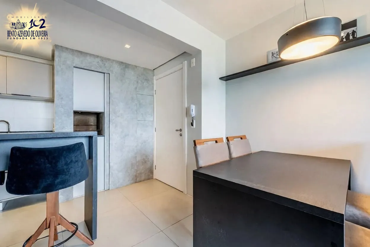 Com planta bem distribuída, o imóvel oferece suíte confortável, lavabo, living para dois ambientes com excelente iluminação natural, cozinha integrada com churrasqueira e área de serviço funcional. Os acabamentos e a mobília agregam praticidade e sofisticação ao dia a dia. Conta ainda com 2 vagas de garagem, um diferencial importante na região.