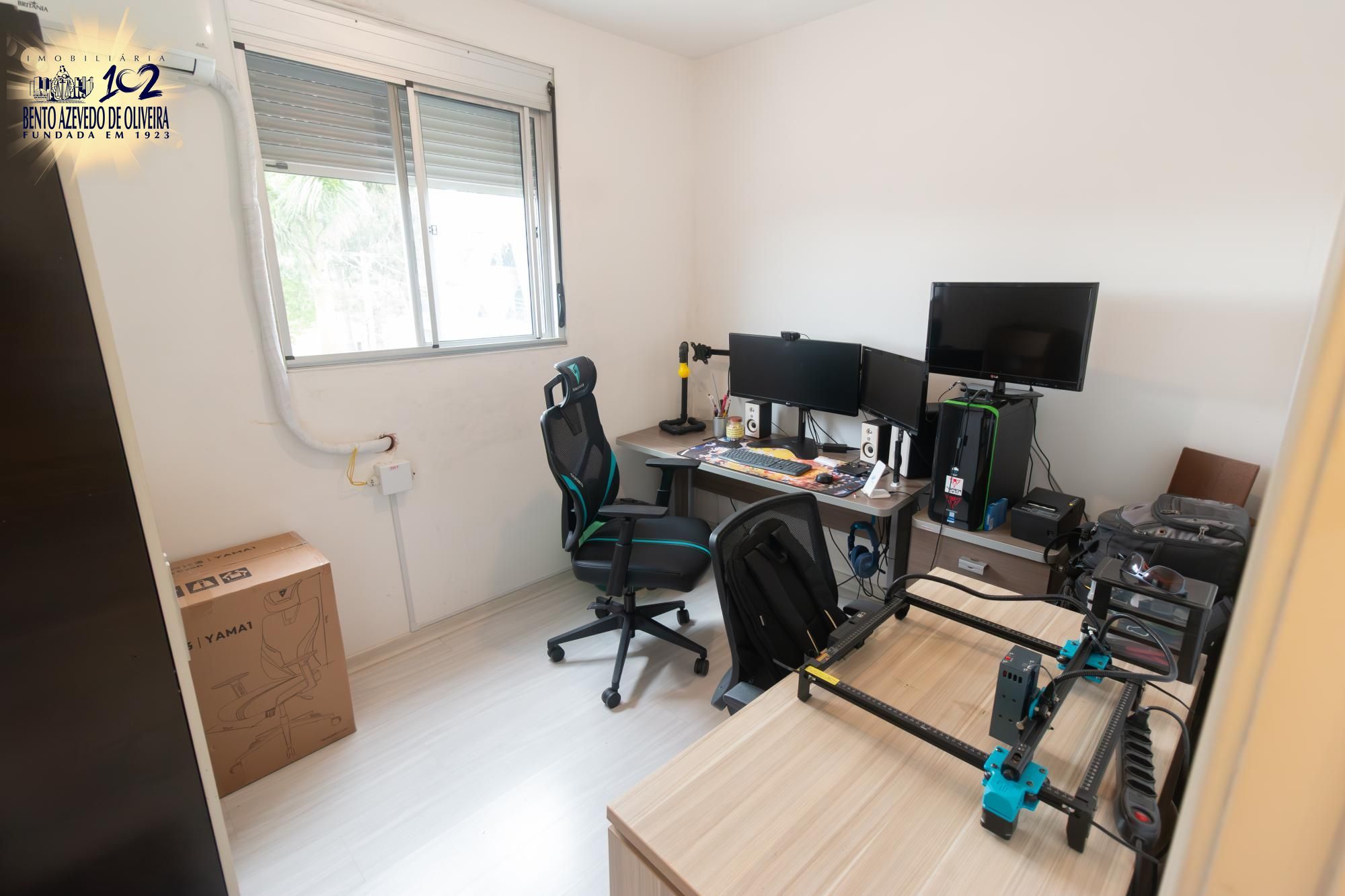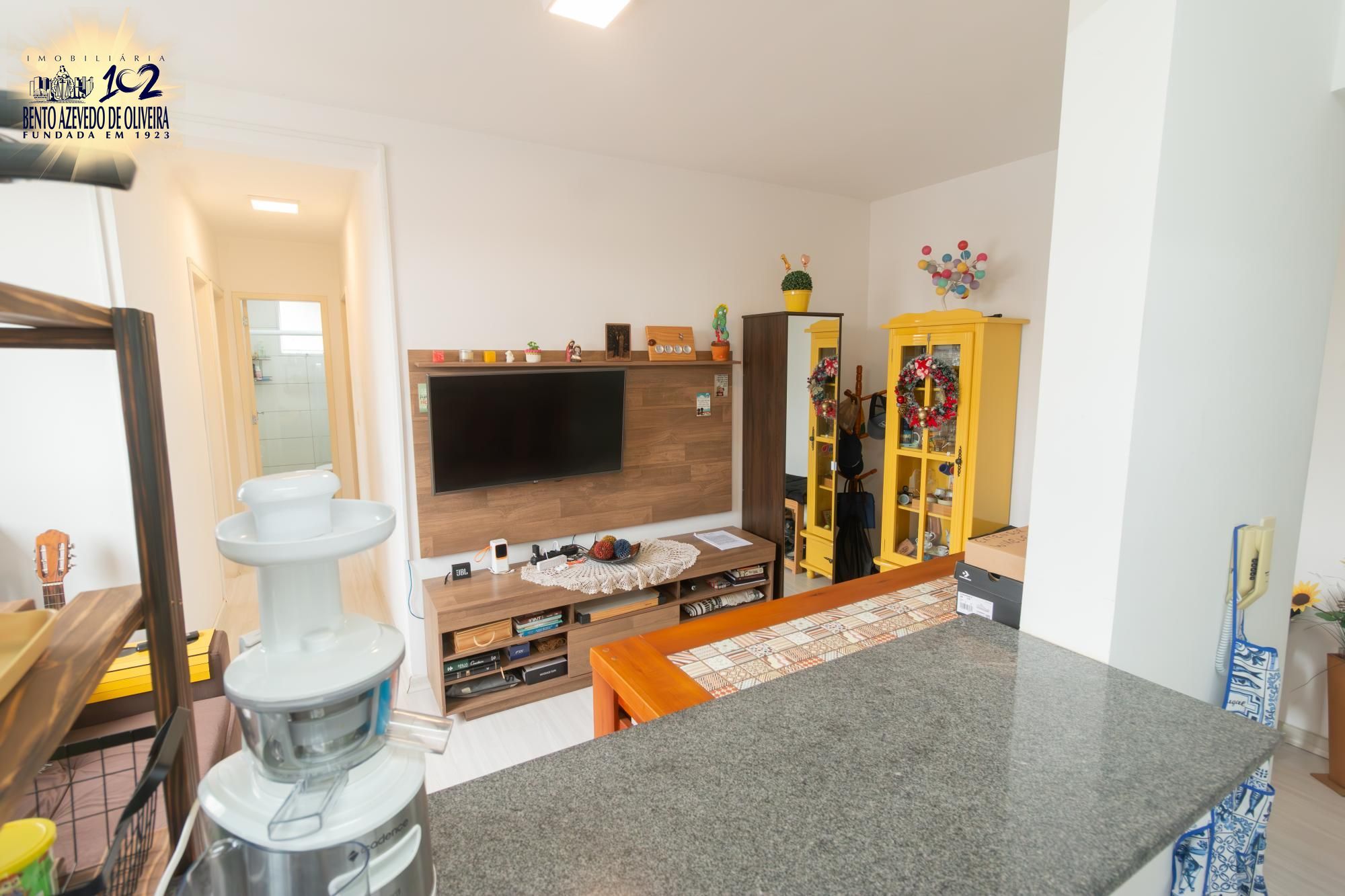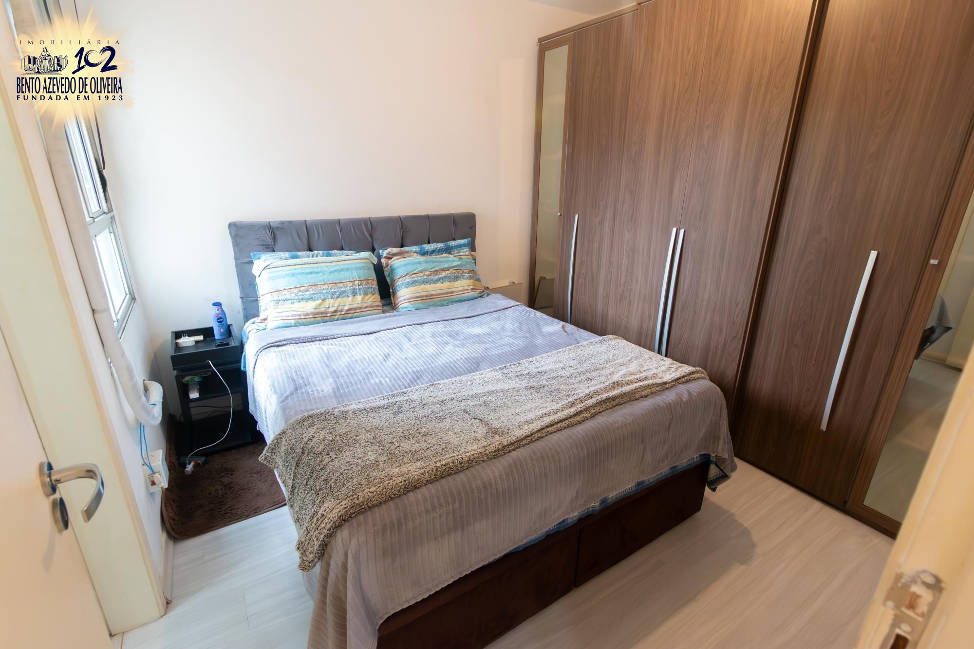 O imóvel conta com vaga de garagem escriturada e já dispõe de móveis planejados na cozinha, além de roupeiro no dormitório principal e ar-condicionado split, agregando ainda mais comodidade.