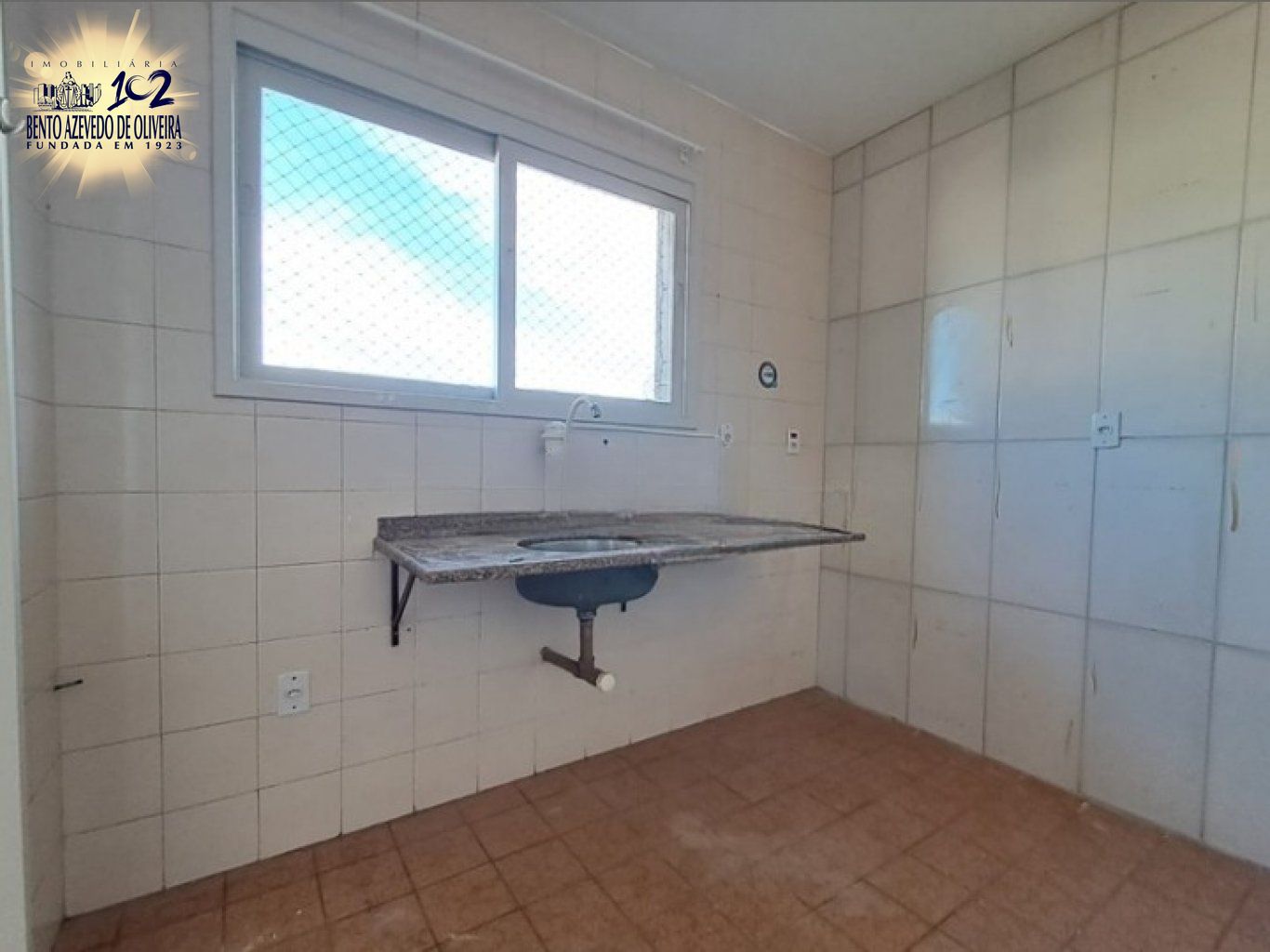 Cozinha ampla, ventilada e com ótima luz solar, possui janelas grandes e revestimento em cerâmica.