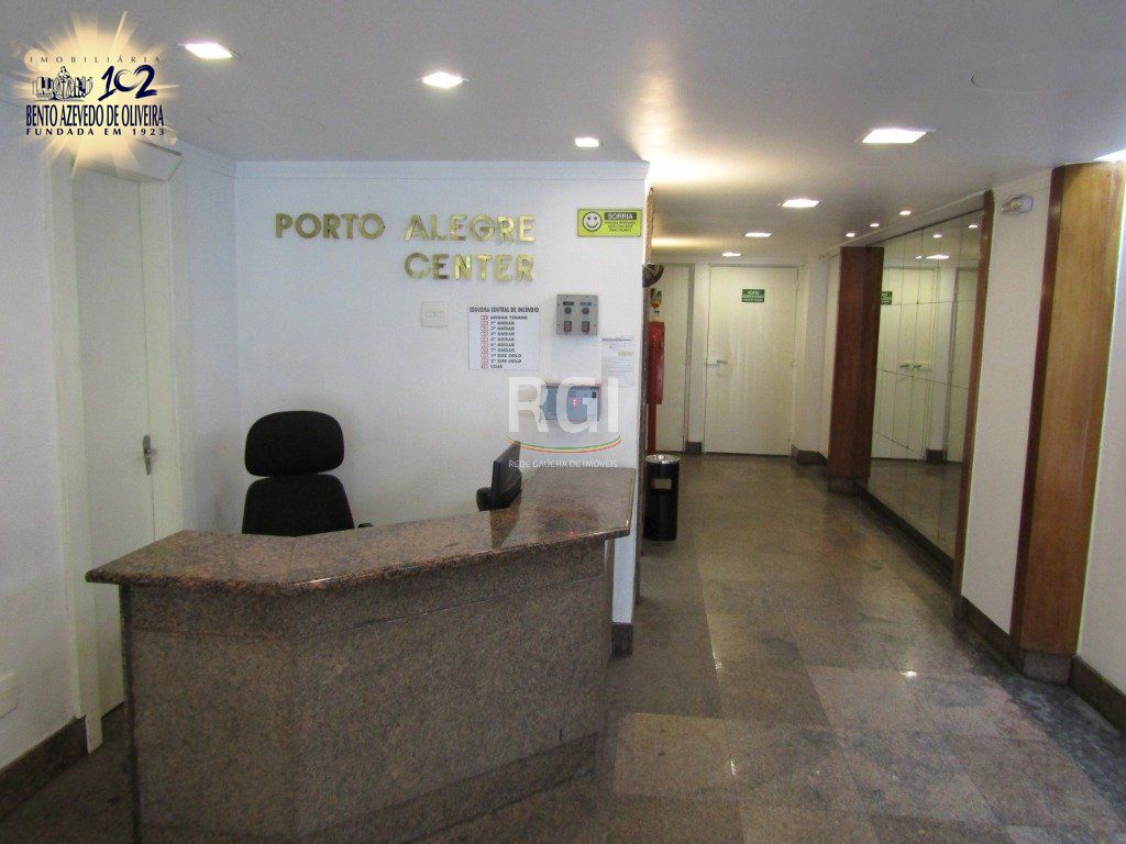 Sala Comercial já montada para Médicos, com Recepção com bancada e cadeiras, Lavabo, dividida em duas, uma maior já mobiliada e banheiro e sala com maca; uma Micro-cozinha, e outra Sala menor mas também com maca, edifício com Portaria 12 horas, 2 Elevadores e 1 vaga de Garagem por Sala no subsolo, circuito de TV e zeladoria, em Frente ao Hospital Santa Casa; 44,42 metros privativos, no centro de Porto Alegre-RS, agende já sua visita.