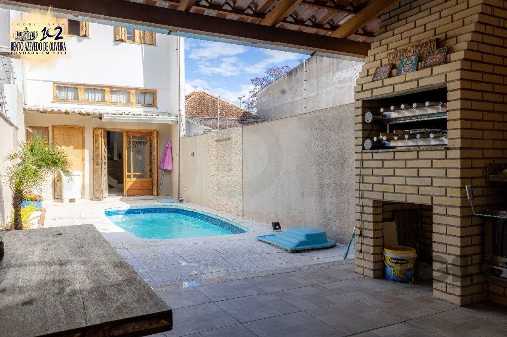 Ótimo sobrado no Partenon, com 110m² privativos, de 3 dormitórios, 4 vagas e pátio com piscina. Possui no andar térreo: sala de estar, lavabo, e cozinha americana mobiliada e área de serviço. No andar superior possui: 3 dormitórios sendo 1 suíte, e banheiro social. Amplo pátio com piscina. Nos fundos anexo com área coberta com churrasqueira, 1 dormitório e banheiro. Pátio na frente com possibilidade de estacionar até 4 carros. Localizada em ótima região próximo da Av. Bento Gonçalves, a poucos minutos do Bourbon Ipiranga e da PUC, com todos os recursos próximos, fácil acesso ao Centro. Aceita financiamento. Agende já uma visita.