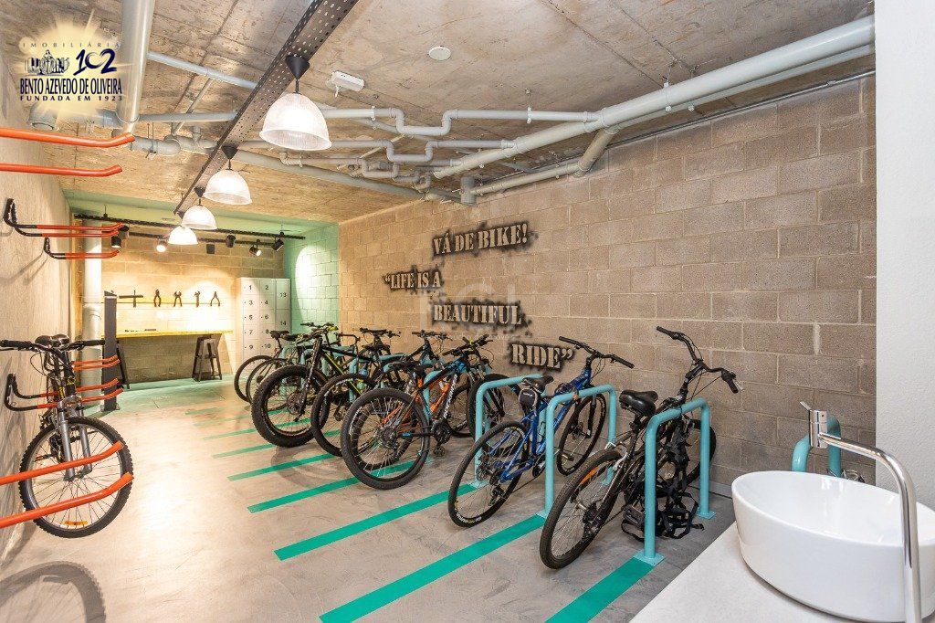 O empreendimento além de ter ideia sustentável, possui bicicletário com oficina, lavanderia, sala de jogos, academia com sistema zero ruídos, sistema alemão, que só em dois prédios em POA possui, piscina, horta comunitária, mercado quadrado e zelador durante o dia...