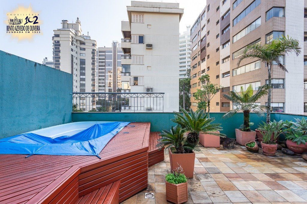 Ótima cobertura duplex, andar alto, com 203m² privativos, de 3 dormitórios e 2 vagas. Possui no andar inferior: amplo living para 2 ambientes com rebaixe em gesso e sacada integrada, 3 dormitórios sendo 1 suite com closet e sacada, lavabo, cozinha americana, e área de serviço separada e banheiro auxiliar. Água quente na cozinha e banheiros. No andar superior possui: ampla sala de estar com lareira e espaço gourmet com churrasqueira, banheiro social, amplo terraço com deck e piscina, com excelente vista e muito sol. Possui 2 vagas escrituradas e cobertas (lado a lado). Edificio com portaria virtual 24 horas, elevadores, gás central, amplo salão de festas, sala de jogos, e zelador. Localizado em ótima região próximo da Praça da Encol, a poucos minutos do Zaffari Cabral, do Grêmio Náutico União, com todos os recursos próximos. Documentação Ok. Agende já uma visita.