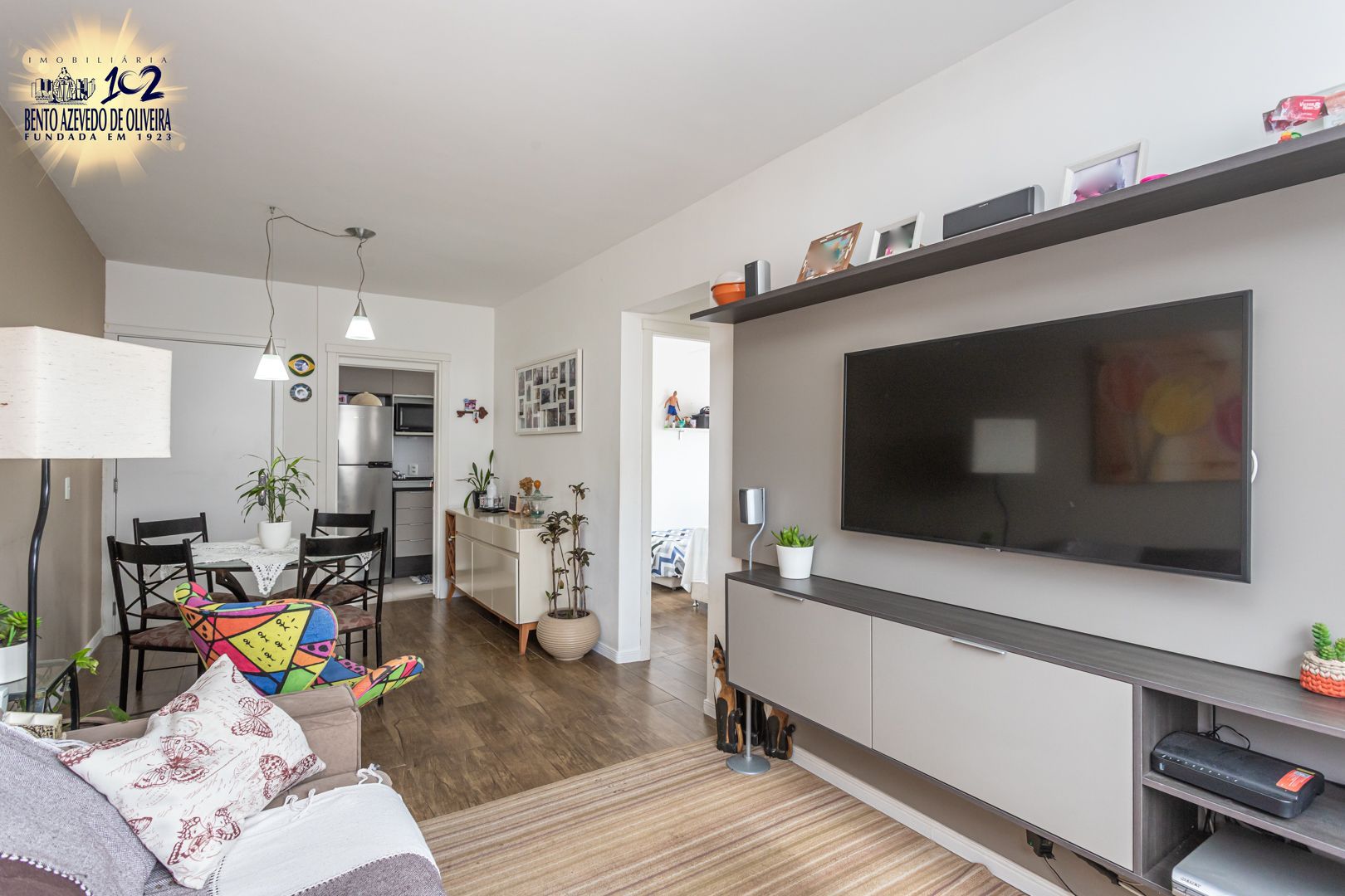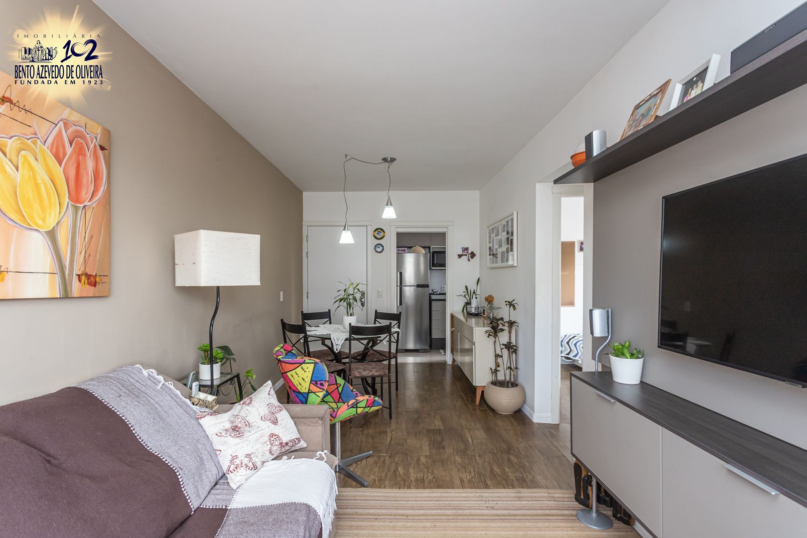 Apartamento 2 dormitórios no 9º andar com vista panorâmica, semi novo, living para 2 ambientes, banheiro social, cozinha, área de serviço e uma vaga de garagem coberta.