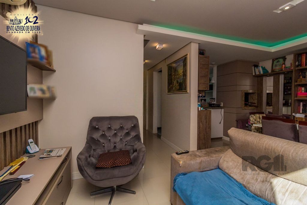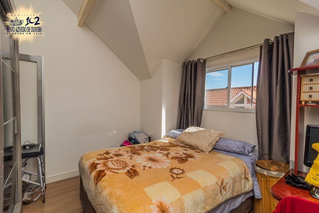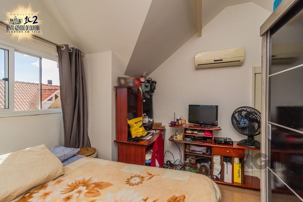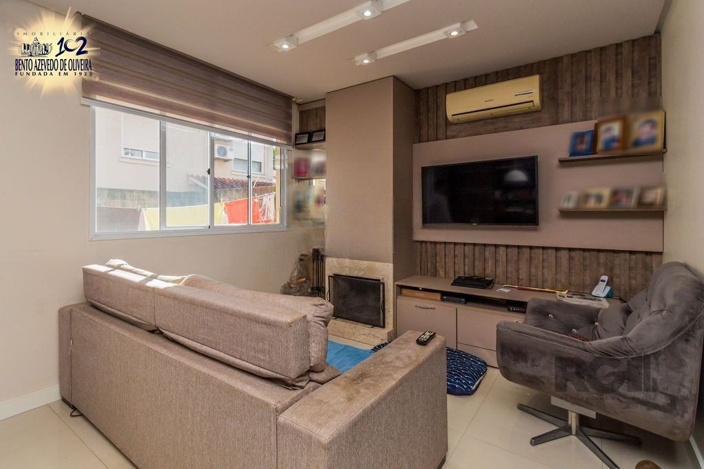 Casa em condomínio fechado com dois pavimentos e mais sótão. Com 144 m² privativos, living dois ambientes com lareira e teto rebaixado de gesso, lavabo e cozinha integrada com churrasqueira. Imóvel bem conservado com janelas amplas frente leste fundos oeste, arejado, com piso em porcelanato. Três dormitórios, suíte e ainda com possibilidade de ampliação das peças. Empreendimento tranquilo e familiar com portaria 24 horas e infraestrutura de lazer completa.