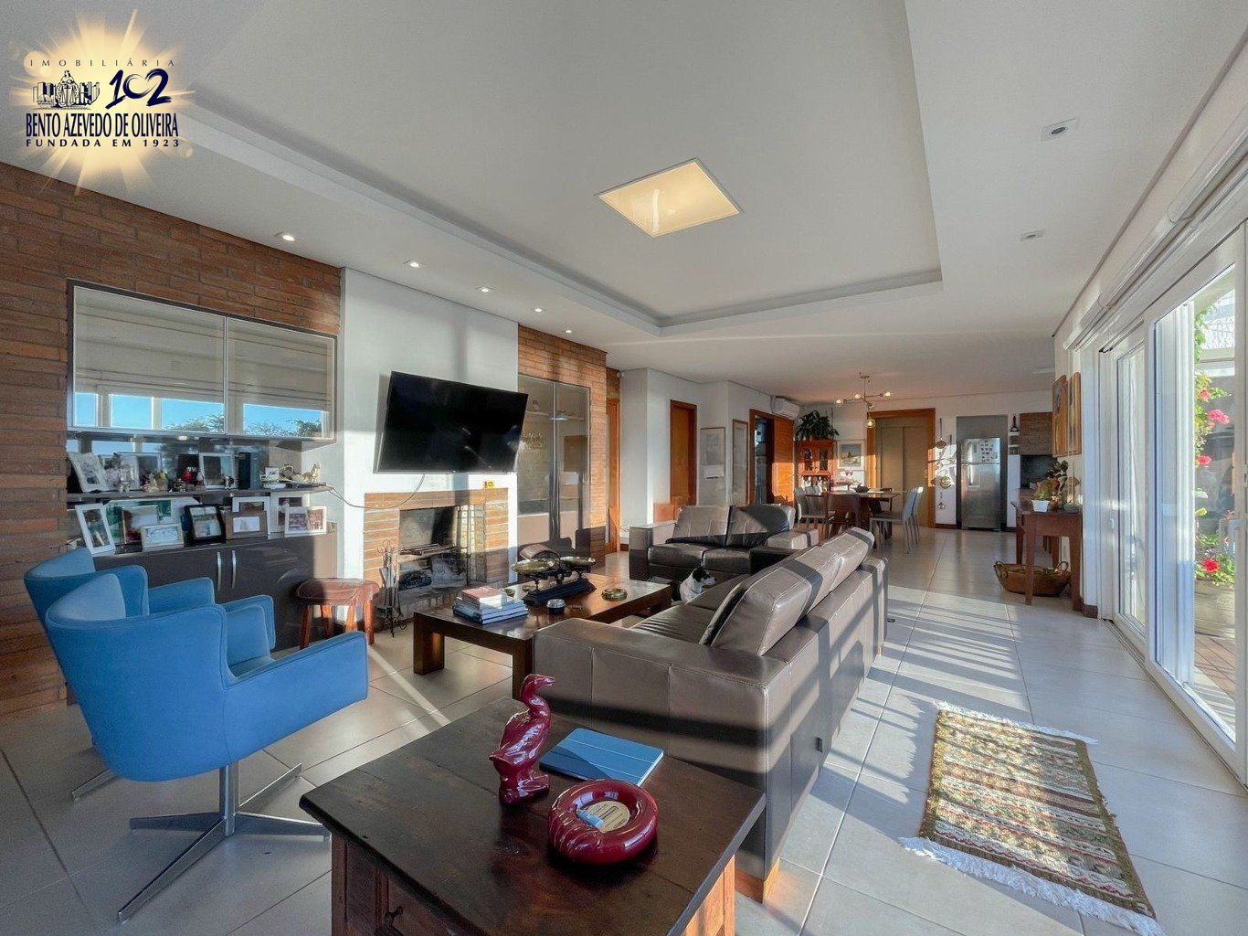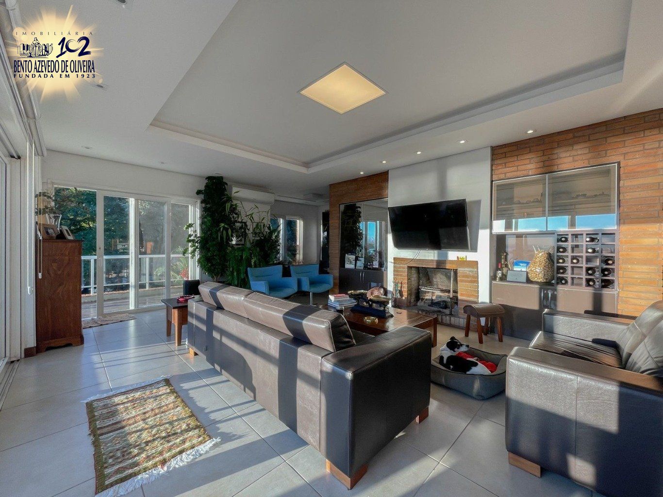No terceiro pavimento, o living se transforma em um camarote exclusivo. A integração perfeita entre a cozinha gourmet, a churrasqueira e a lareira criam o ambiente ideal para receber, tudo isso emoldurado por uma vista panorâmica e inesquecível do Guaíba.