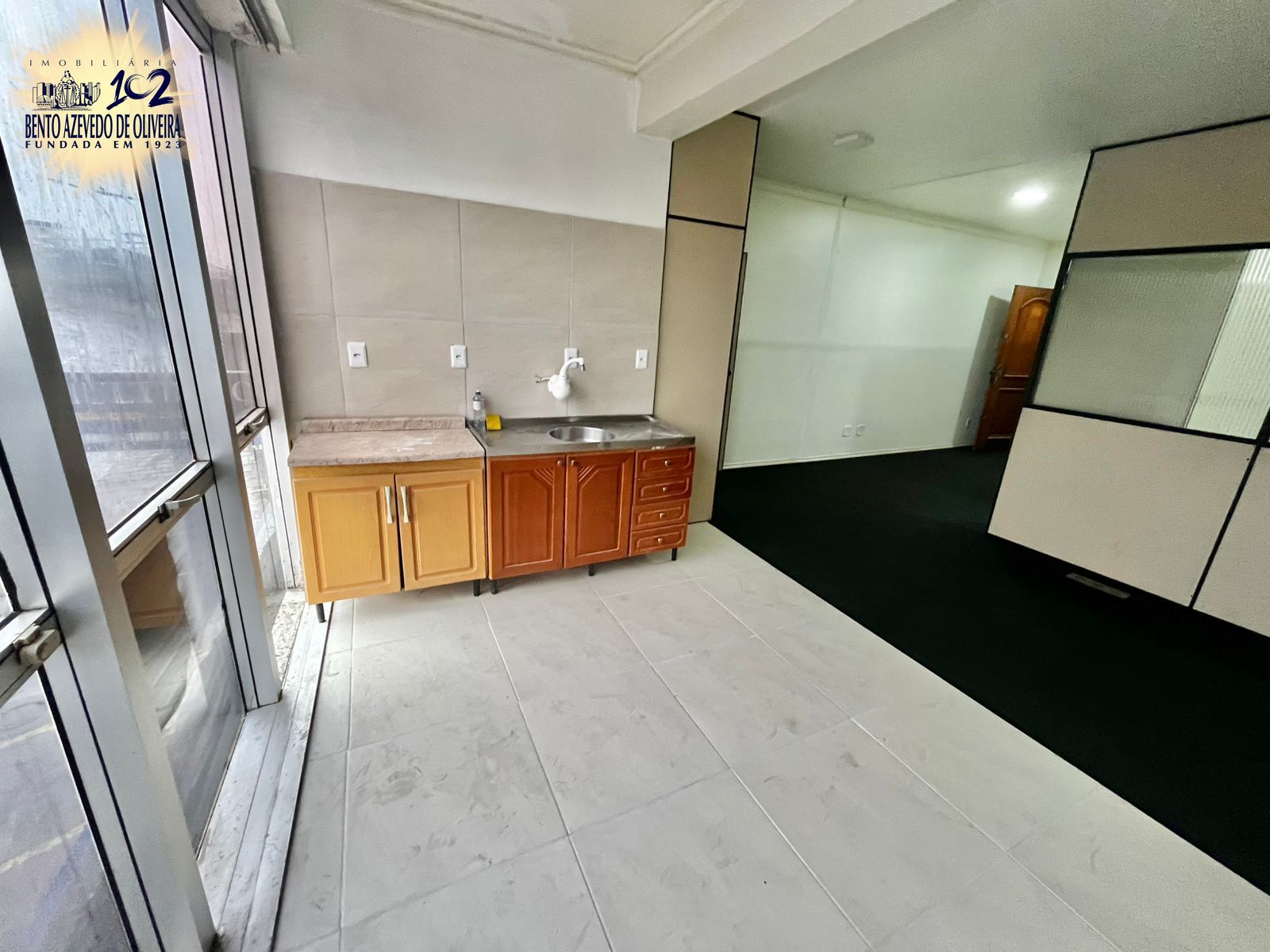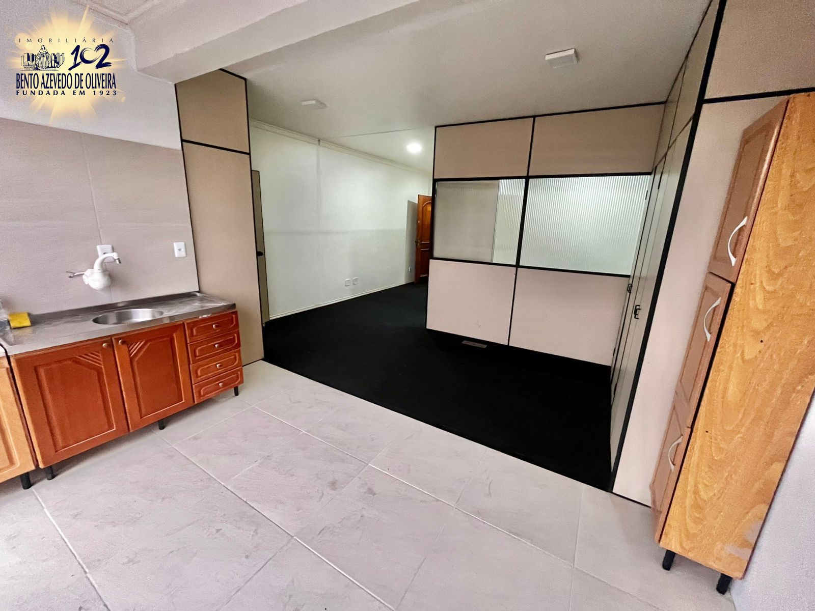 Amplo Kitnet, com 47 m2, com banheiro e cozinha, divisórias instaladas, boa ventilação e posição solar.