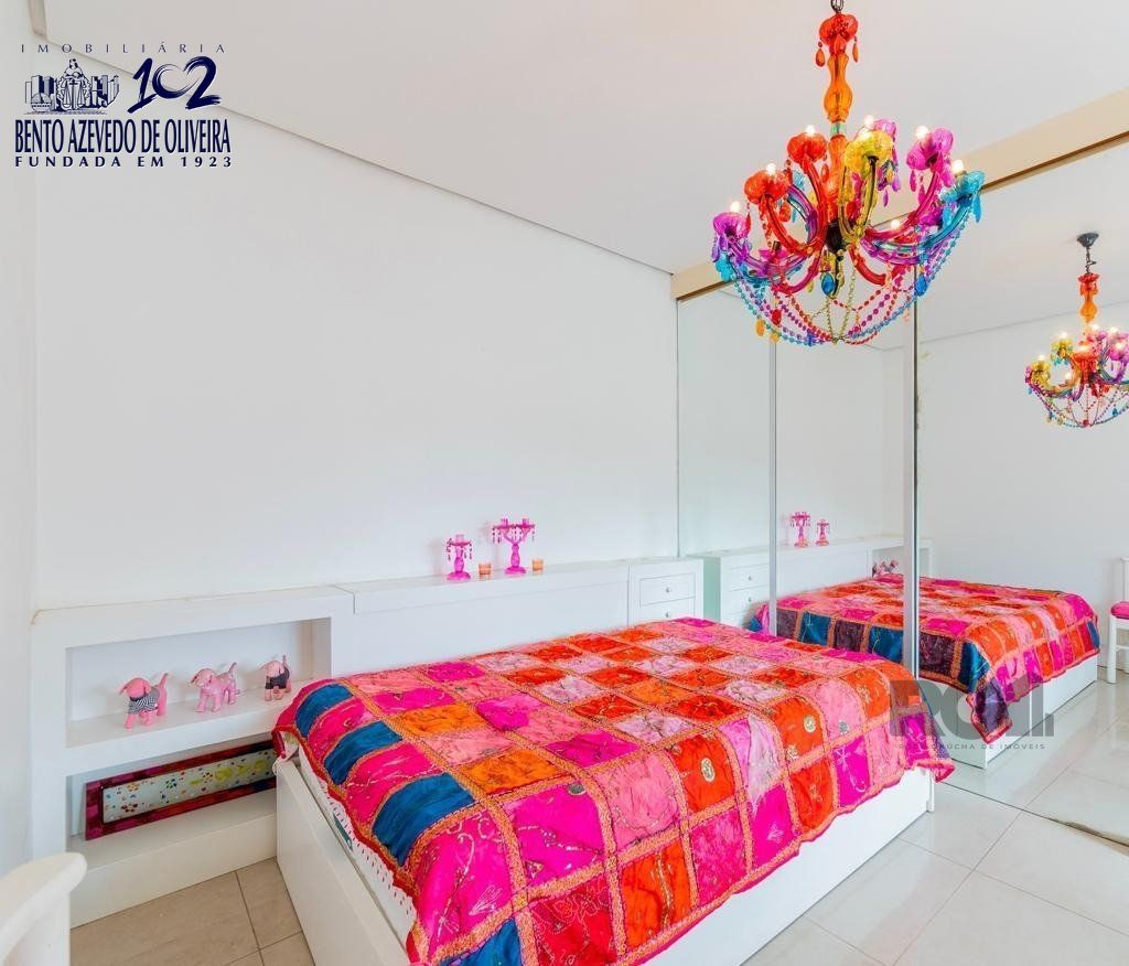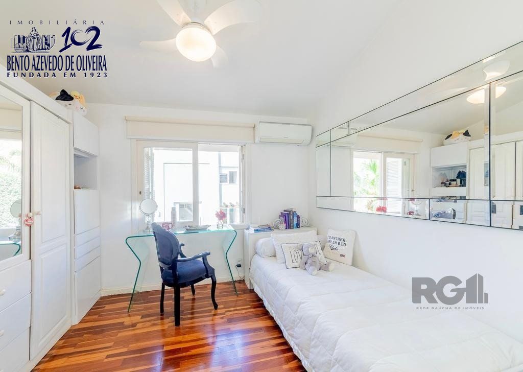 No andar superior, há duas suítes completas, com banheiro privativo e closet espaçoso. Também possui um depósito e uma sacada com vista ampla da cidade de Porto Alegre, com direito a um pôr do sol maravilhoso. O projeto arquitetônico privilegia estilo e lazer.