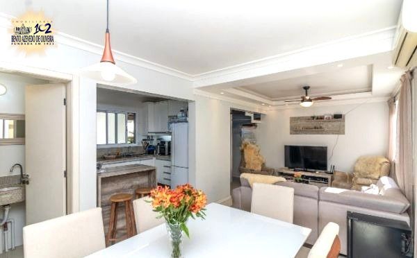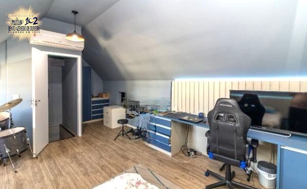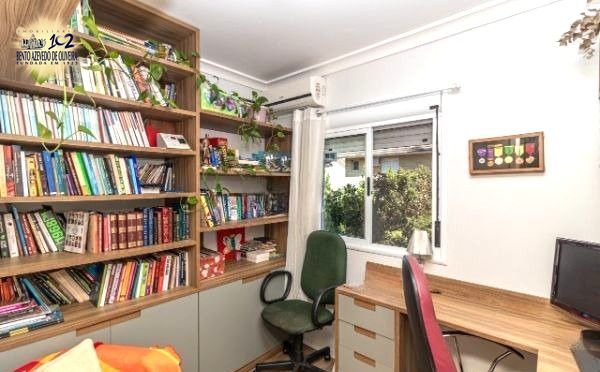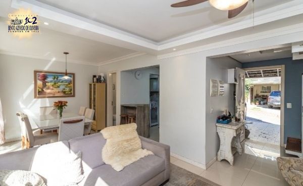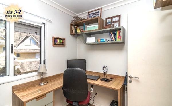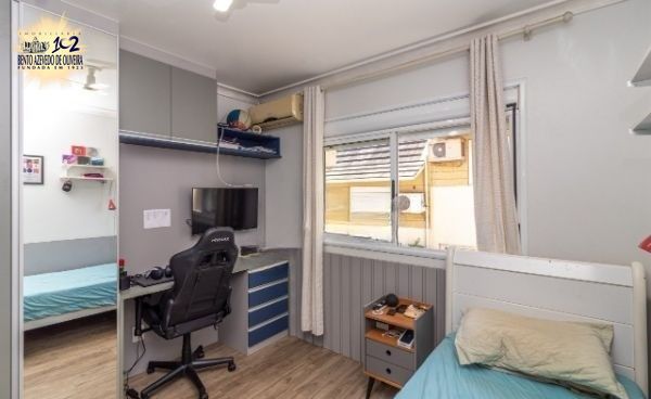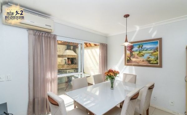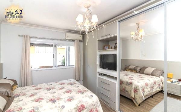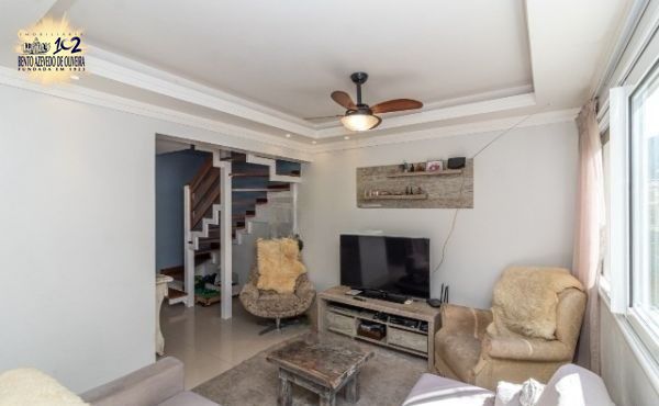 Excelente sobrado no Condomínio Villa Serena, bairro teresópolis, de 3 pavimantos, com 179m² privativos, de 3 dormitórios + sótão, 2 vagas e infra. Possui no andar térreo: sala de estar com sanca de gesso, sala de jantar, lavabo, cozinha americana, área de serviço. Nos fundos possui espaço gourmet coberto com churrasqueira e pátio privativo. No 2º pavimento possui: 3 dormitórios sendo 1 suíte e banheiro social. Ambos banheiros com box de vidro e ventilação natural. No 3º pavimento amplo sótão podendo ser 4º dormitório/escritório ou sala de TV. Garagem coberta para 2 carros em frente da unidade. Imóvel com peças amplas, muito ventilado e iluminado. Ficam móveis planejados. Condomínio com infra estrutura completa de lazer e segurança. Localizado em ótima região, a poucos minutos do Bourbon Teresópolis. Aceita financiamento. Agende já uma visita.
