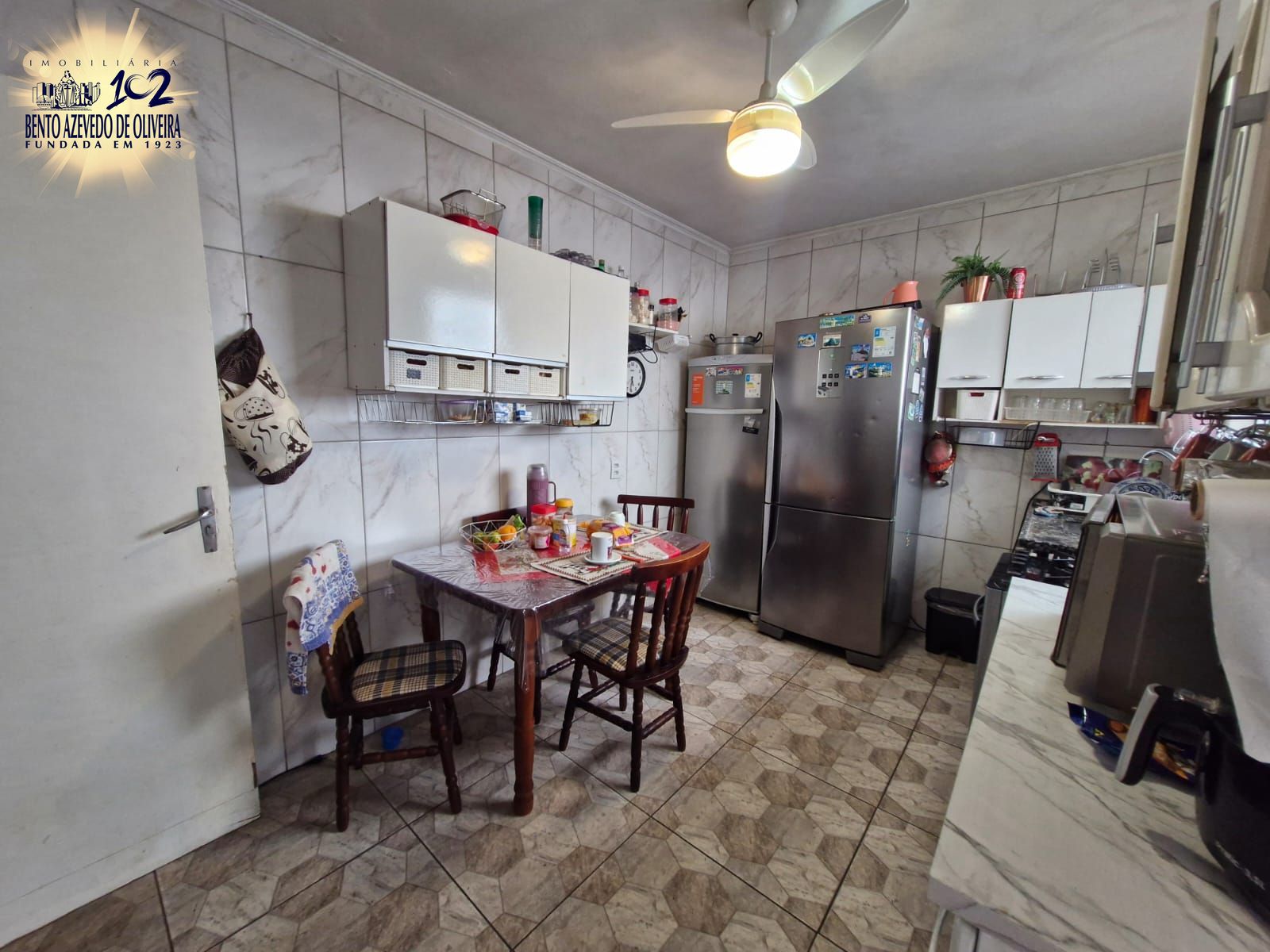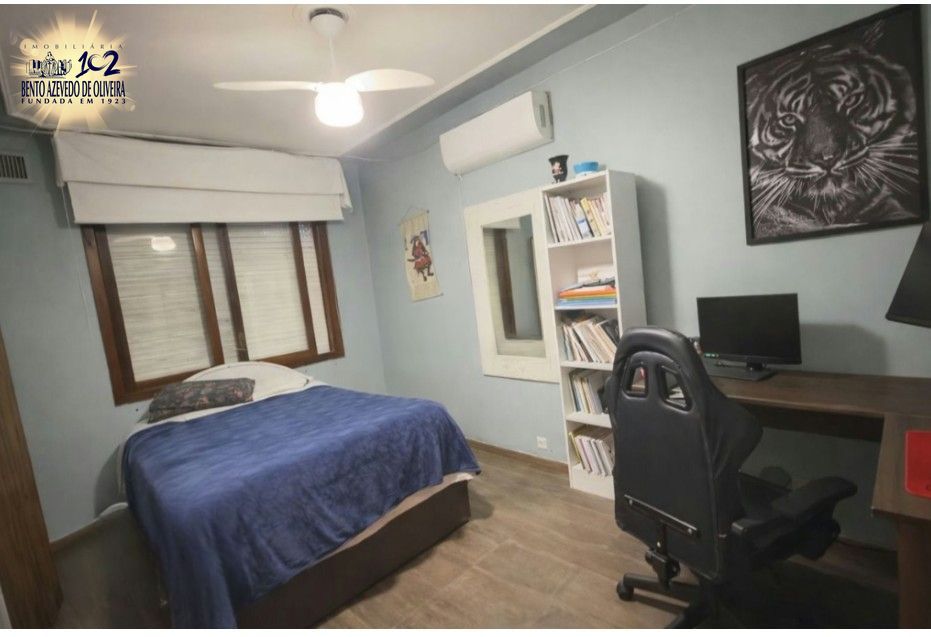 Casa com 3 dormitórios, sendo 1 suíte, e 2 banheiros. Living integrado à cozinha e 3 vagas de garagem. Nos fundos, possui uma edícula com 3 dormitórios, cozinha e 1 banheiro; na parte superior da edícula há um espaço que pode ser utilizado como salão de festas.