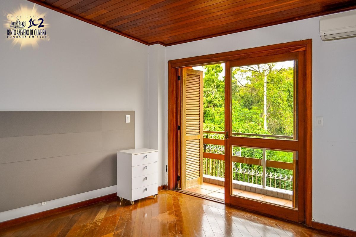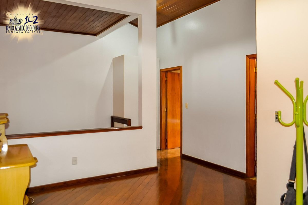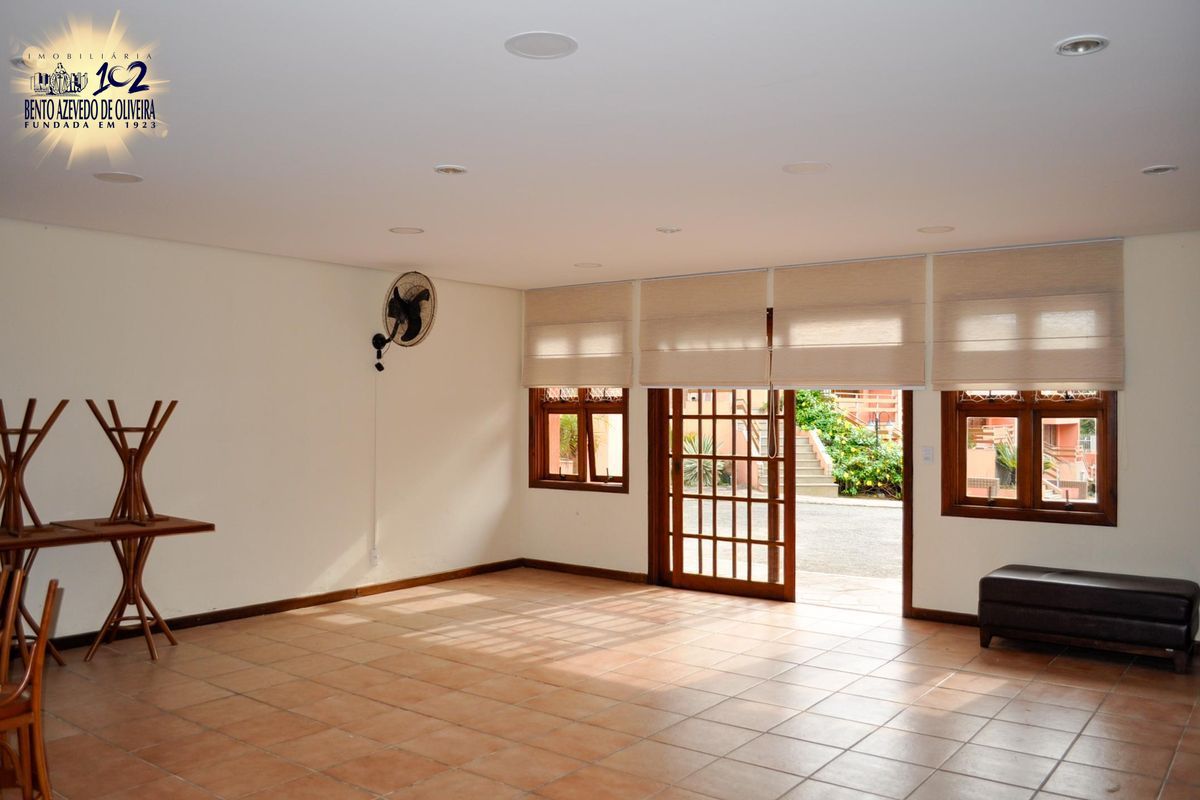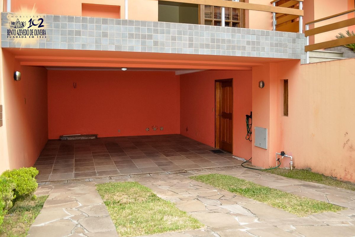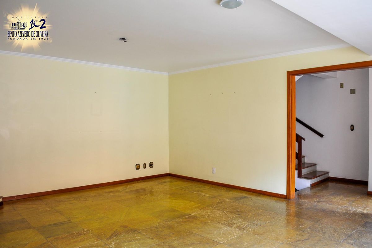 São 3 dormitórios, sendo um deles uma suíte com possibilidade do quarto dormitório, sala de estar com lareira, sala de jantar com cozinha americana, living 2 amplos ambientes, copa com bar e churrasqueira, adega, banheiro social, lavabo e banho auxiliar (total 4 banheiros), lavanderia, depósito, pequeno pátio, 2 sacadas, 1 varanda e garagem para até 4 carros.
