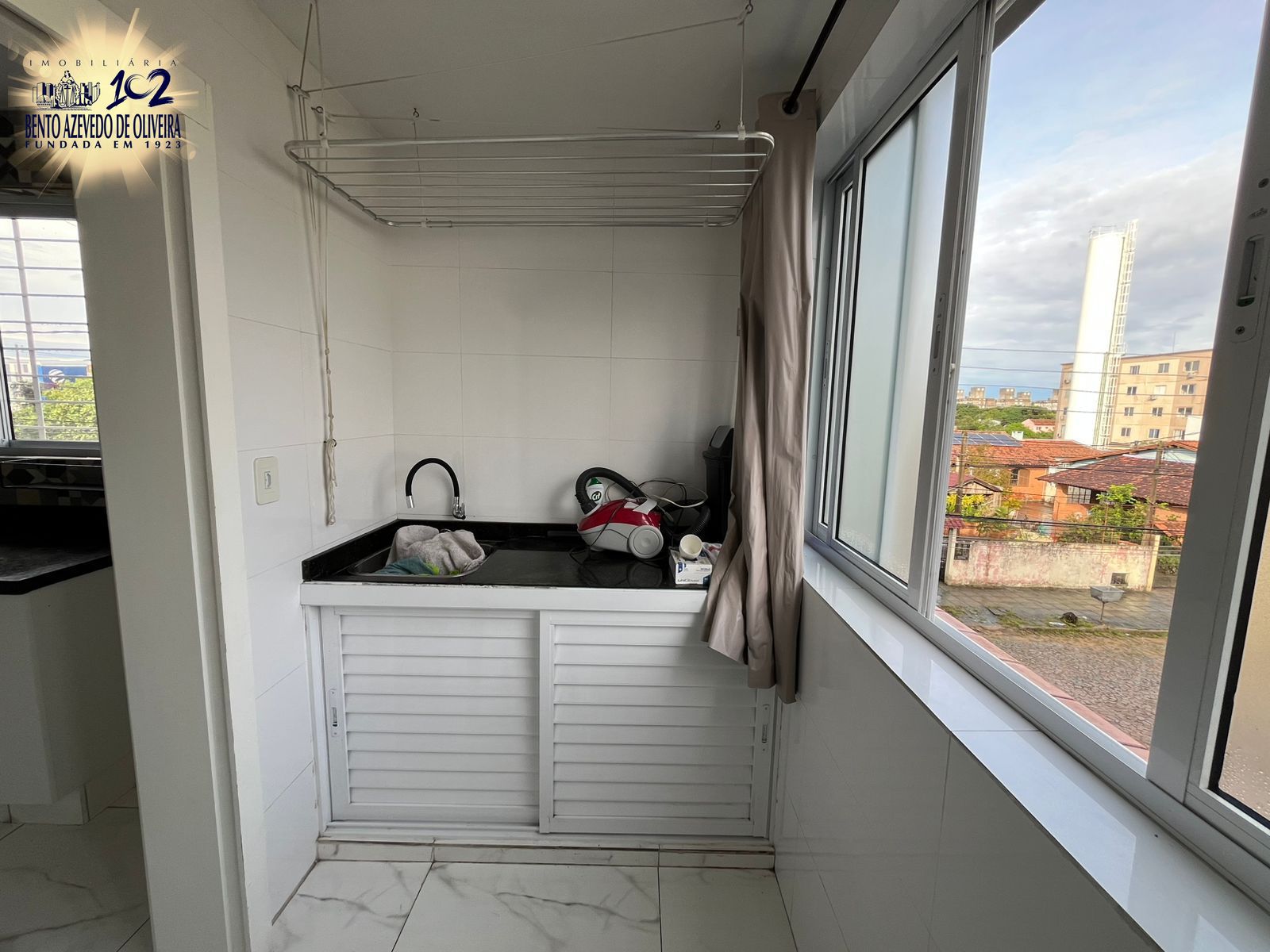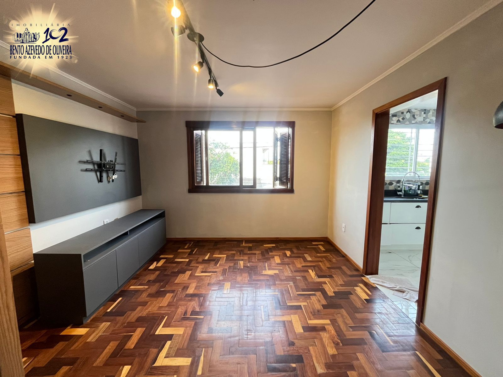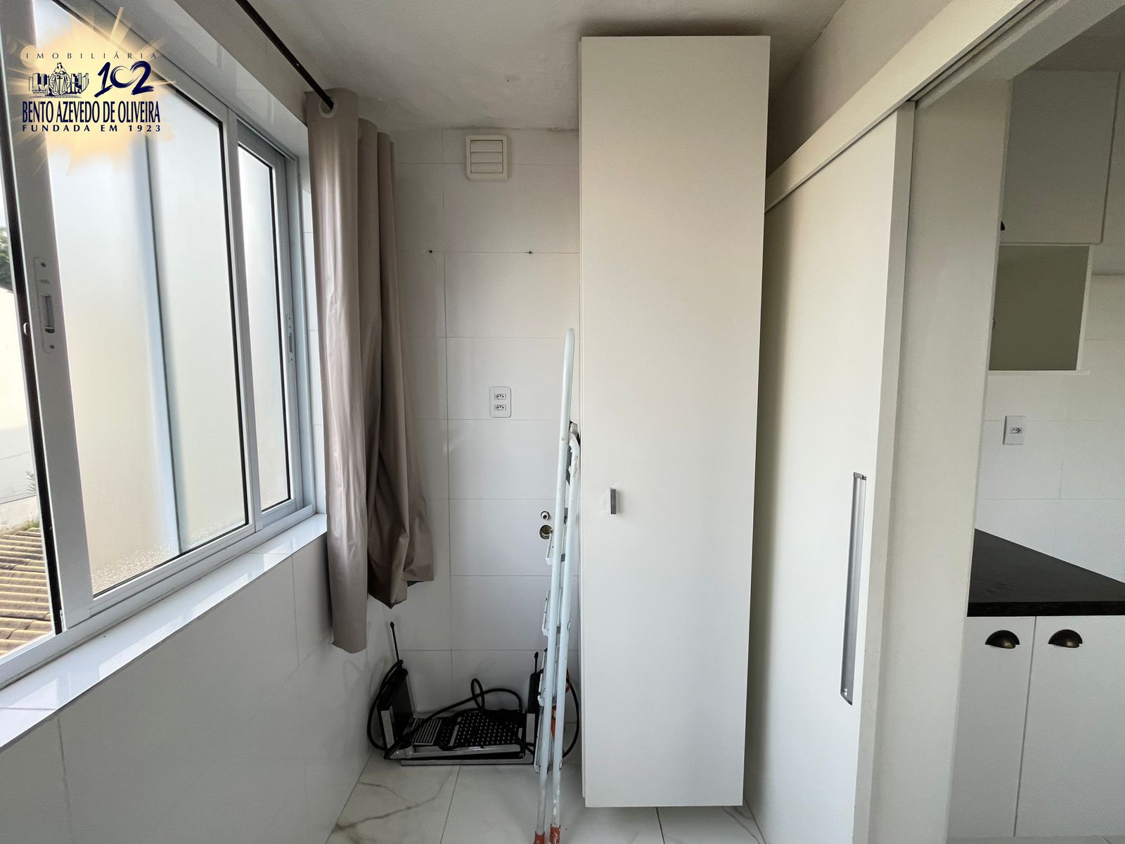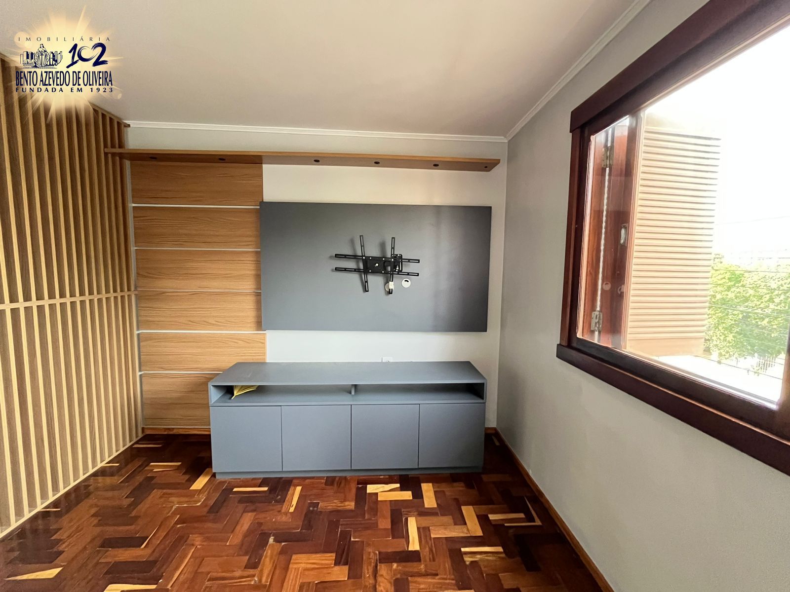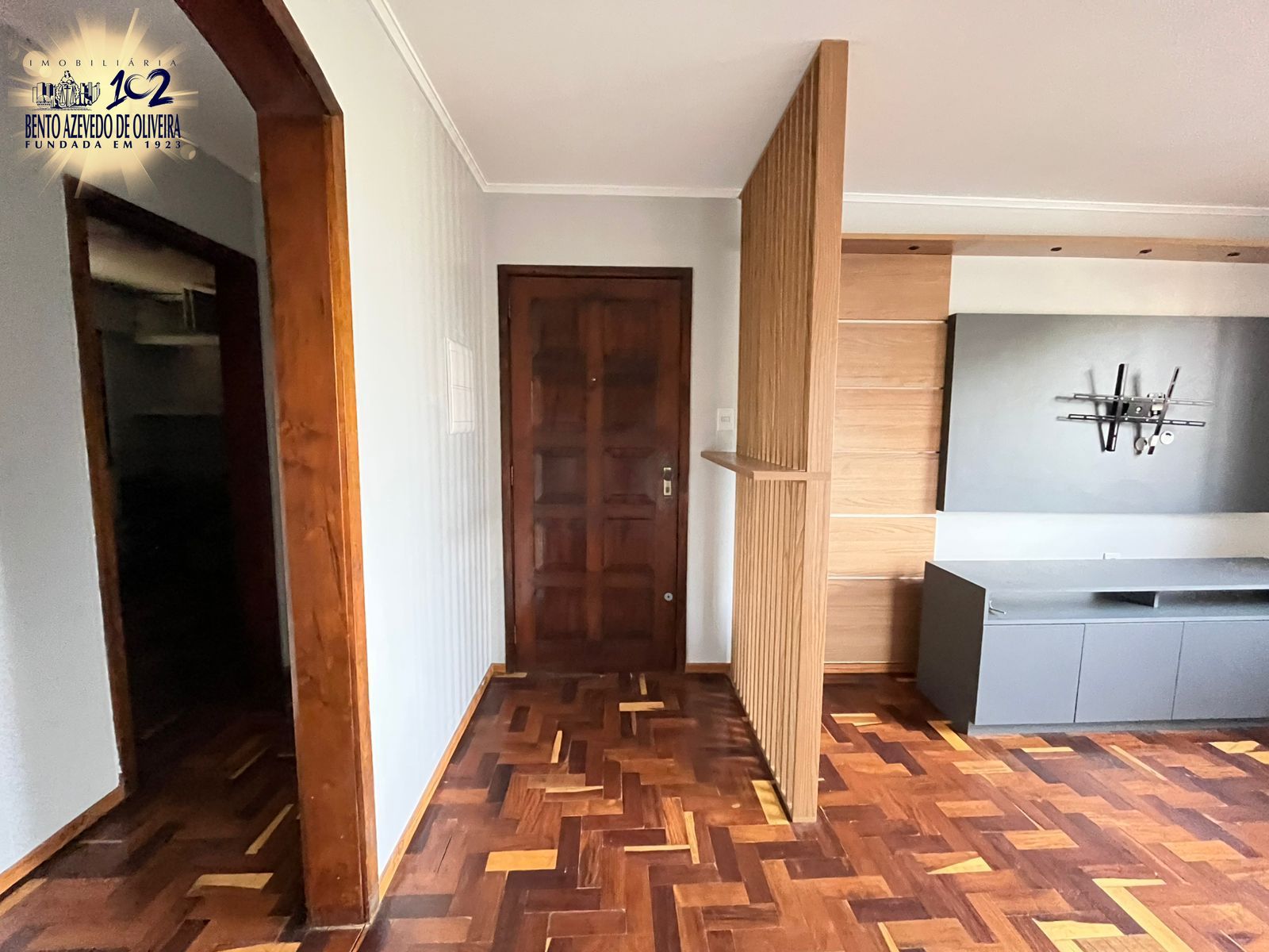 Hall de entrada com ripado de madeira, sala super ampla, com rack e painel de tv. A cozinha tem armários sob medida e a lavanderia é separada por uma porta de correr. Lavanderia com tanque, espaço para varal e máquinas eu um armário.