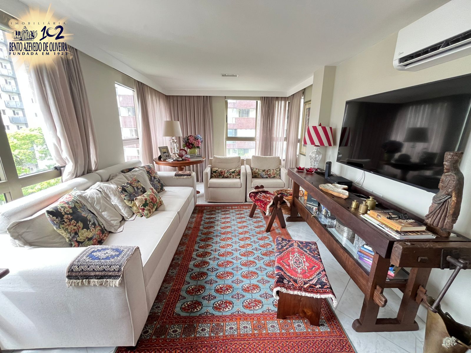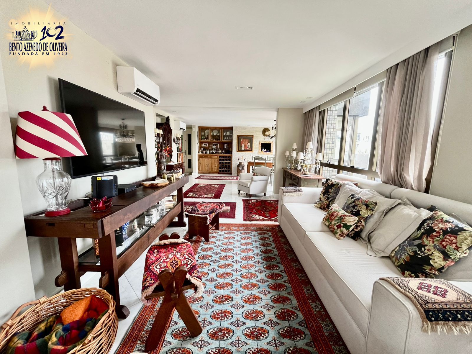 A área social é um dos destaques do imóvel: sala muito espaçosa com dois ambientes bem definidos, estar e jantar, além de churrasqueira com pia de apoio, perfeita para receber amigos e família. As janelas amplas percorrem praticamente toda a sala, trazendo muita luminosidade ao ambiente. O espaço conta ainda com 2 ar-condicionados split.