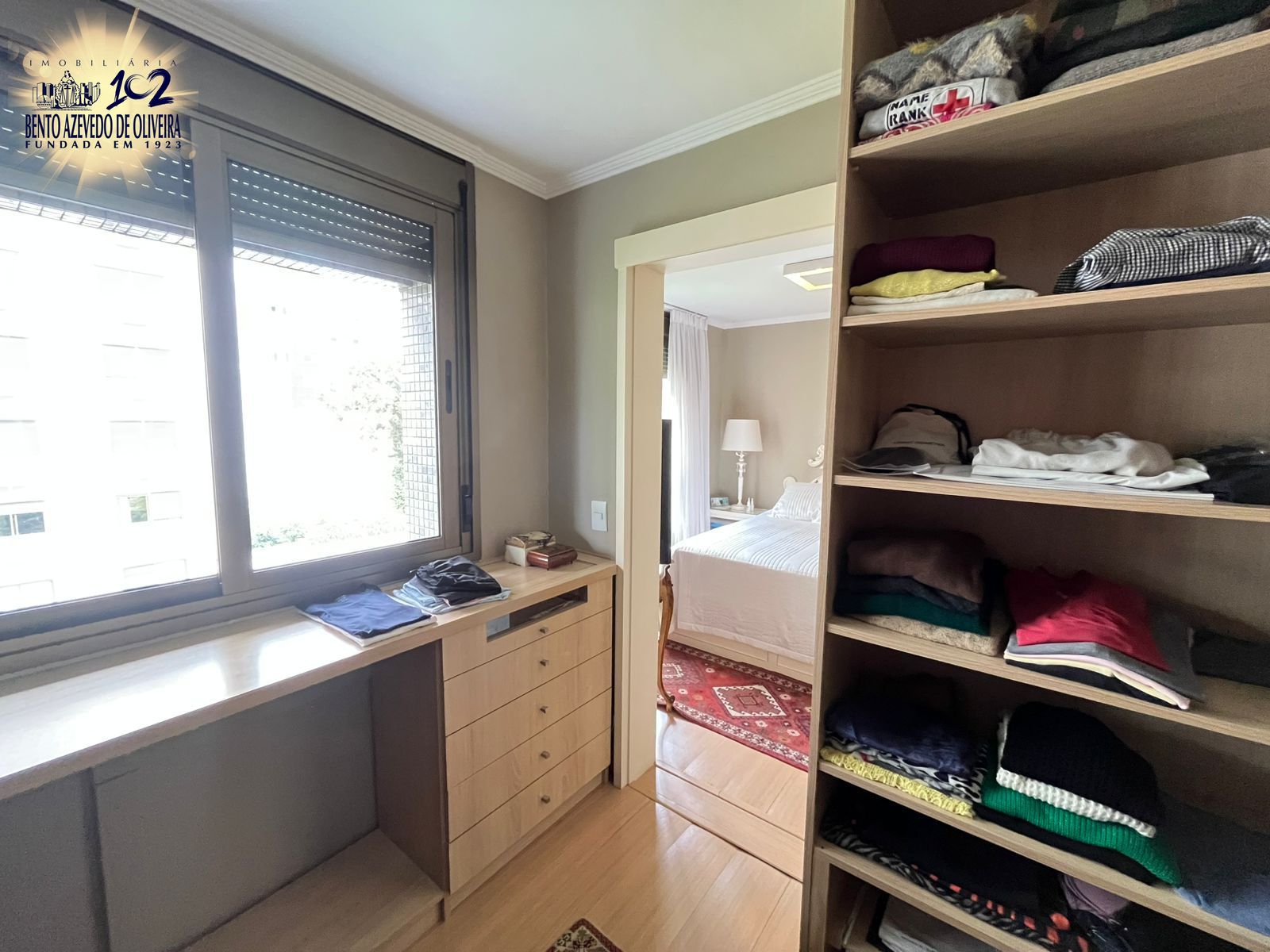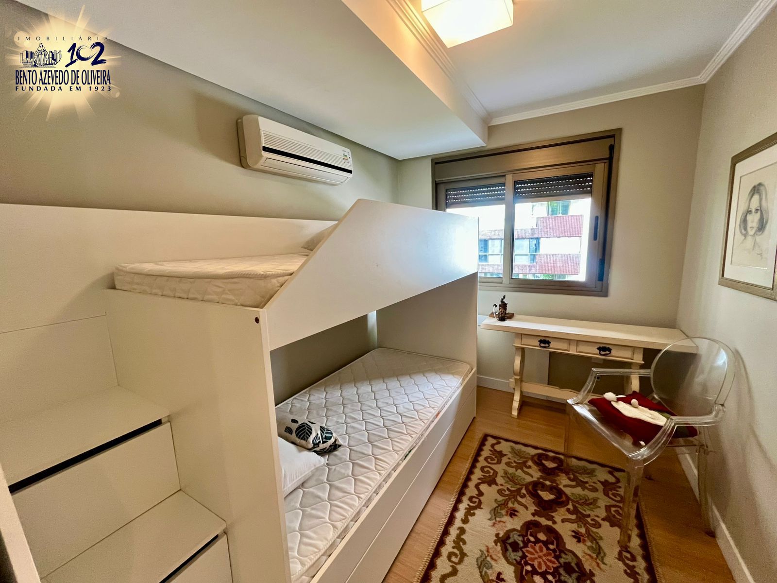Na área íntima, há 1 dormitório amplo com bicama sob medida e 1 suíte com closet. O imóvel ainda conta com uma peça extra versátil, que pode ser utilizada como terceiro dormitório, escritório ou espaço para armários.