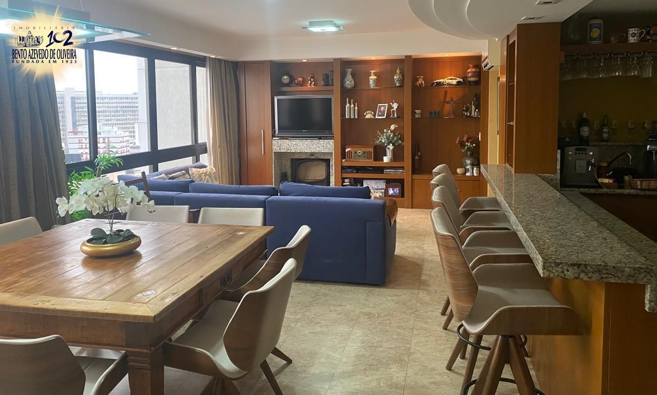 No bairro rio Branco, apartamento sem mobiliado, 133m, área privativa, 3 dormitorios, 1 suíte impecável, andar alto , imovel, com muitas benfeitorias. Living para 2 ambientes bem definidos. Estar com lareira , churrasqueira, lavabo, cozinha, area de serviço, banheiro auxiliar, Dependência ou opção para gabinete. 4 vagas individuais escrituradas.