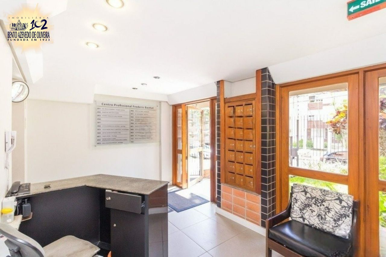 Sala comercial no bairro Petrópolis, próximo à Av. Protásio Alves, com 28,86 m² privativos, semi mobiliado, com bancada, 2 ambientes, lavabo, piso laminado e teto de gesso. Prédio com elevador, portaria 12 horas e zeladoria.