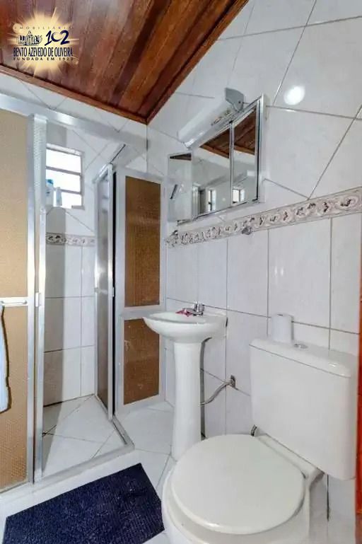 Casa à venda com 3 dormitórios, sendo 1 suíte, localizada em terreno alto. O imóvel conta, na parte inferior, com sala de entrada, 2 dormitórios, banheiro social com cuba em granito e box em alumínio, cozinha ampla, área de serviço, sala de jantar espaçosa e banheiro auxiliar. Possui garagem coberta para 2 carros.