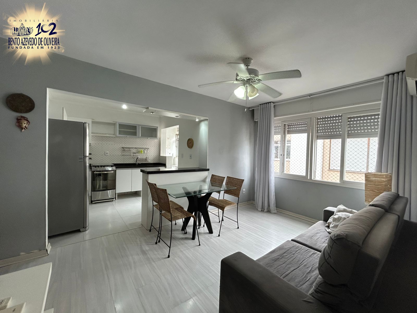 Amplo apartamento de 2 dormitórios, com dependência de empregada/escritório, living integrado a cozinha americana, banheiro social e mais um lavabo, área de serviço e vaga de garagem fechada.