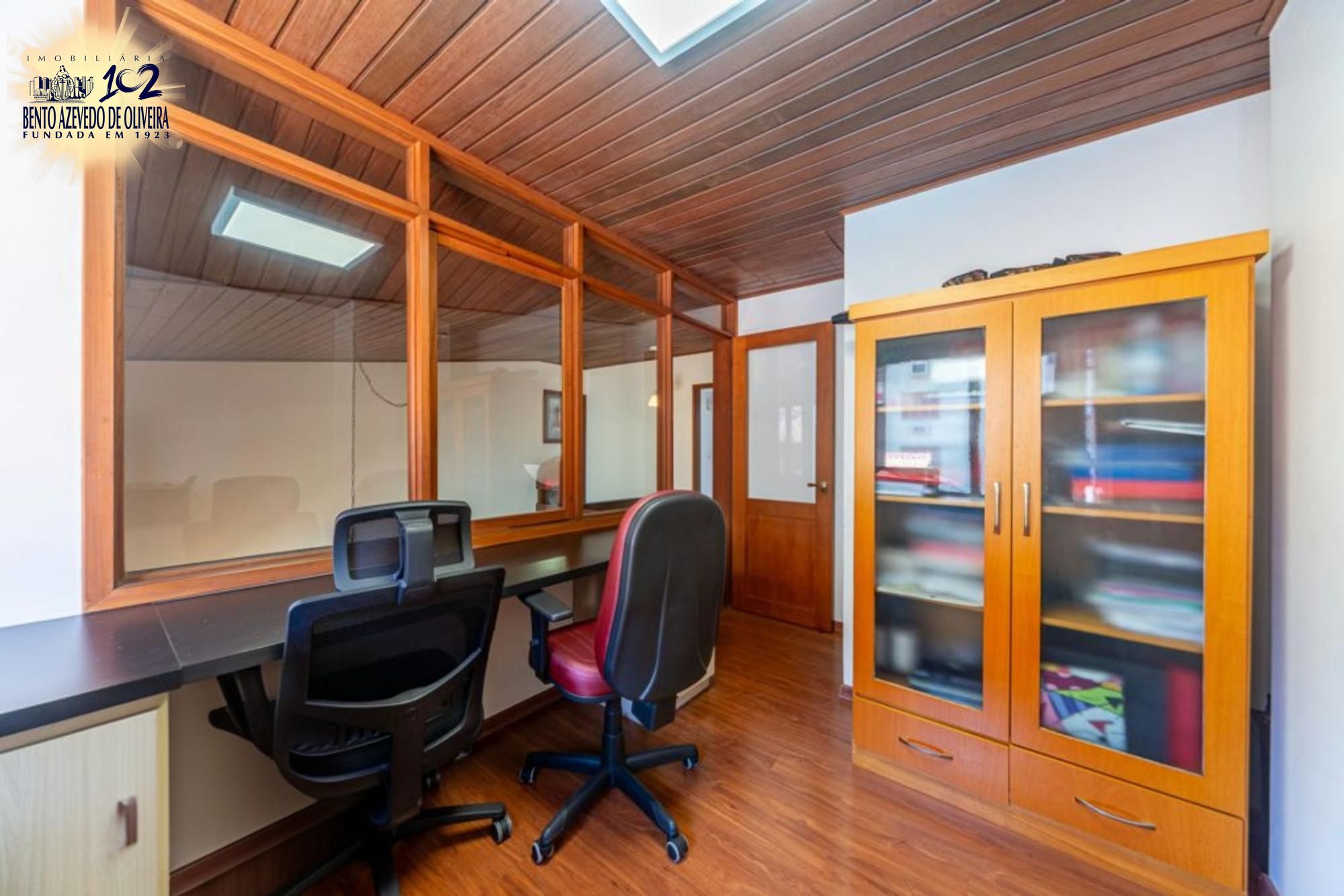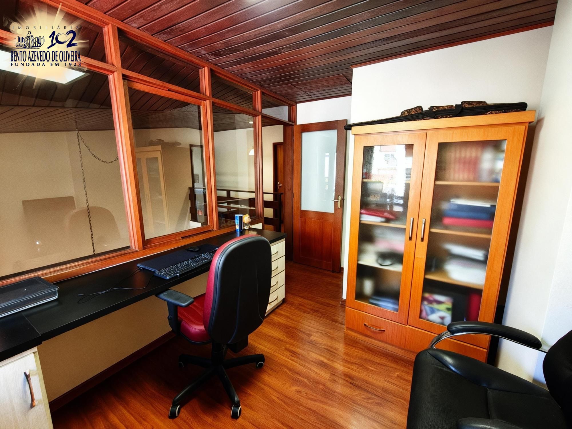 No andar superior, escritório com móveis que pode ser transformado em quarto. Banheiro iluminado, ventilado, com móveis sob medida e box de vidro. Segundo quarto amplo, com móveis fixos, painel, expositor, ar-condicionado e sacada fechada em vidro. Terceiro quarto amplo, com armário, podendo ser usado como closet, cinema ou brinquedoteca, com janelas amplas.