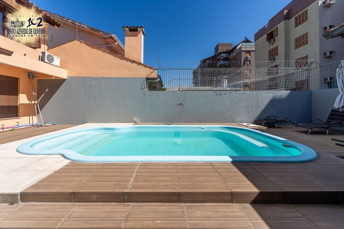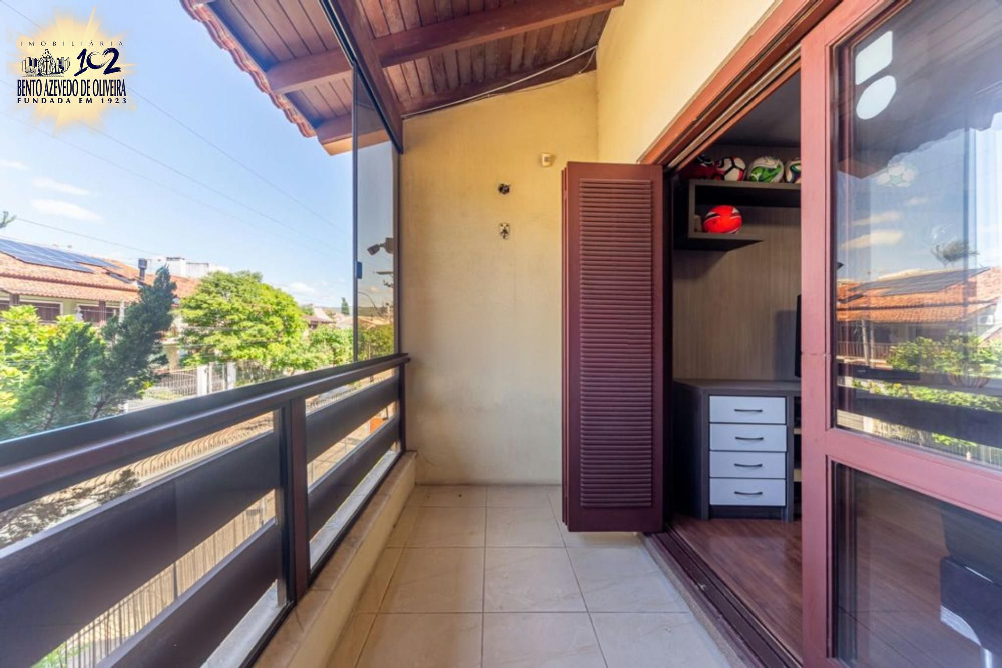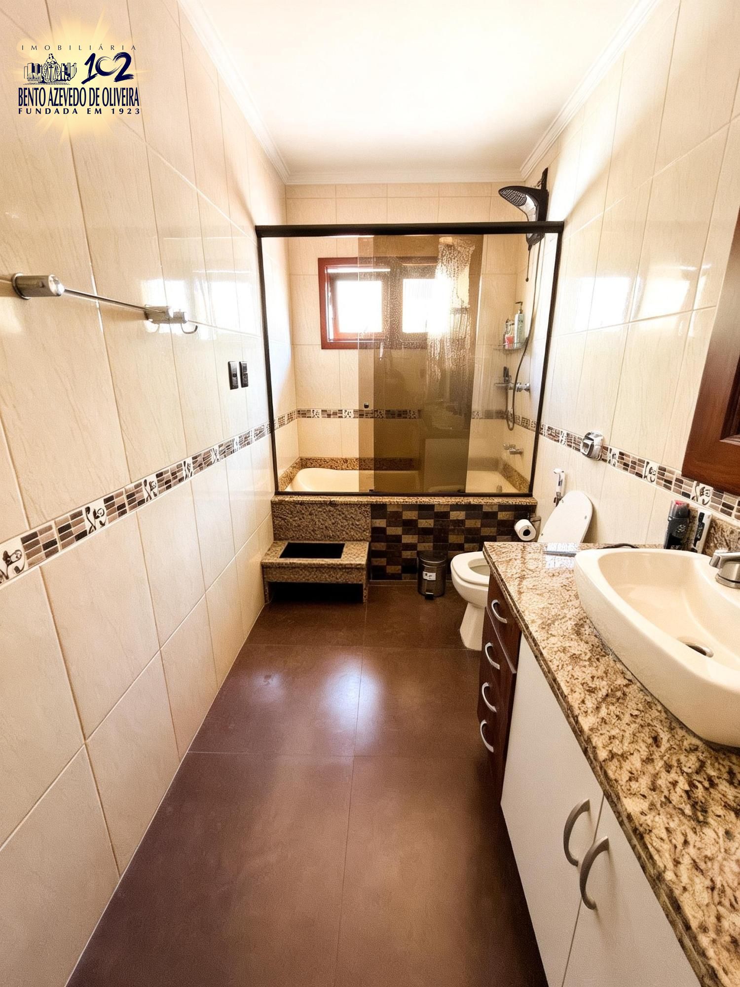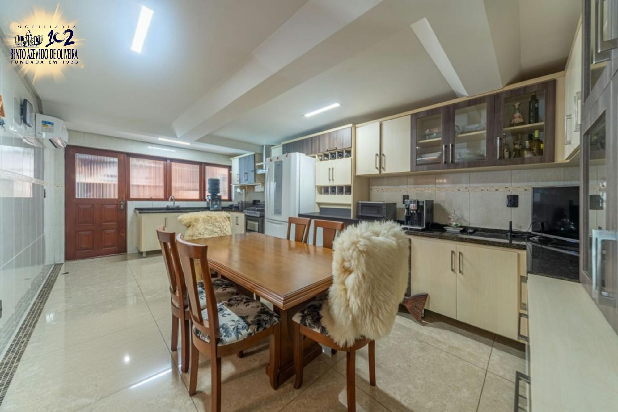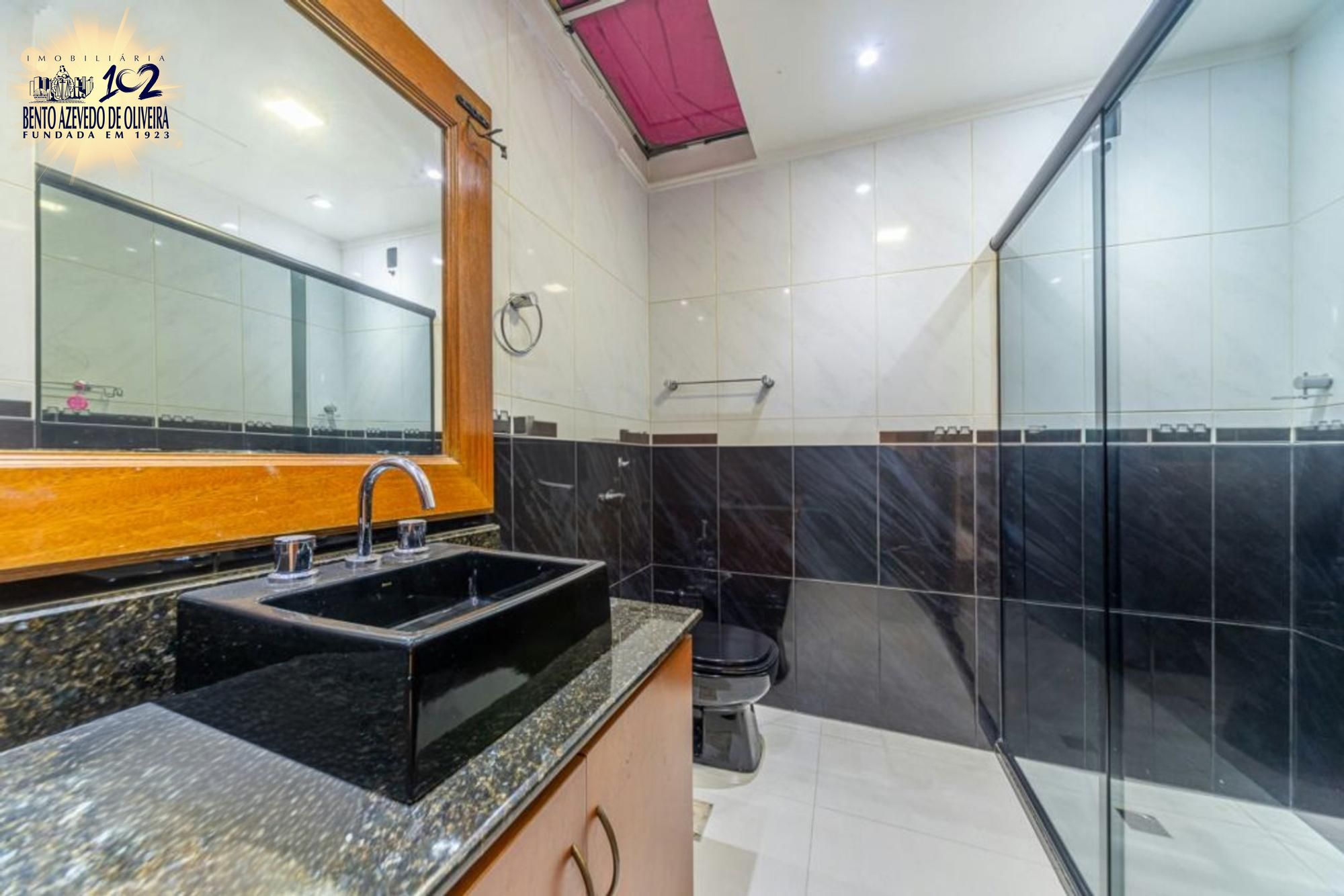 Área gourmet nos fundos com churrasqueira, mesa ampla, pia em mármore, fogão a lenha e mesa de sinuca em ambiente fechado com vidro. Piscina com pátio amplo. Dependência de empregada com possibilidade de uso como canil ou quarto de hóspedes, com ar-condicionado. Banheiro auxiliar com box de vidro e chuveiro elétrico.