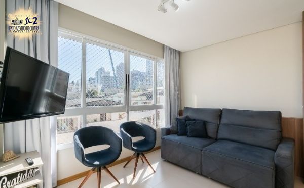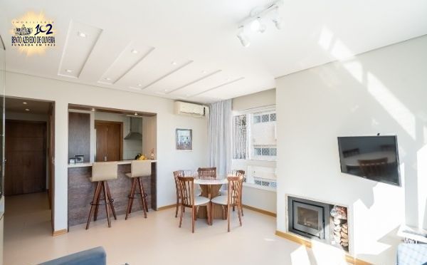 Ótimo apartamento no bairro Rio Branco, no Condomínio Arcoverde, de fundos, semi mobiliado, com 72m² privativos, de 2 dormitórios e 2 vagas. Possui living amplo para 2 ambientes com rebaixe em gesso e lareira, 2 dormitórios sendo 1 suíte, banheiro social, cozinha americana com churrasqueira, e área de serviço separada. Água quente na cozinha e banheiros. Ambos banheiros com ventilação natural. Imóvel muito ventilado e iluminado. Ficam todos móveis planejados fixos. Possui 2 vagas de garagem cobertas e escrituradas (box duplo) e depósito individual ao lado da vaga. Condomínio com portaria 24h, 2 elevadores, gás central (consumo individual), salão de festas, playground, jardim e zeladoria. Localizado em ótima região a poucos minutos do Zaffari da Cabral, do Hospital de Clínicas, do Colégio Leonardo da Vinci, do Colégio Israelita e da Praça da Encol. Aceita financiamento. Agende já uma visita.